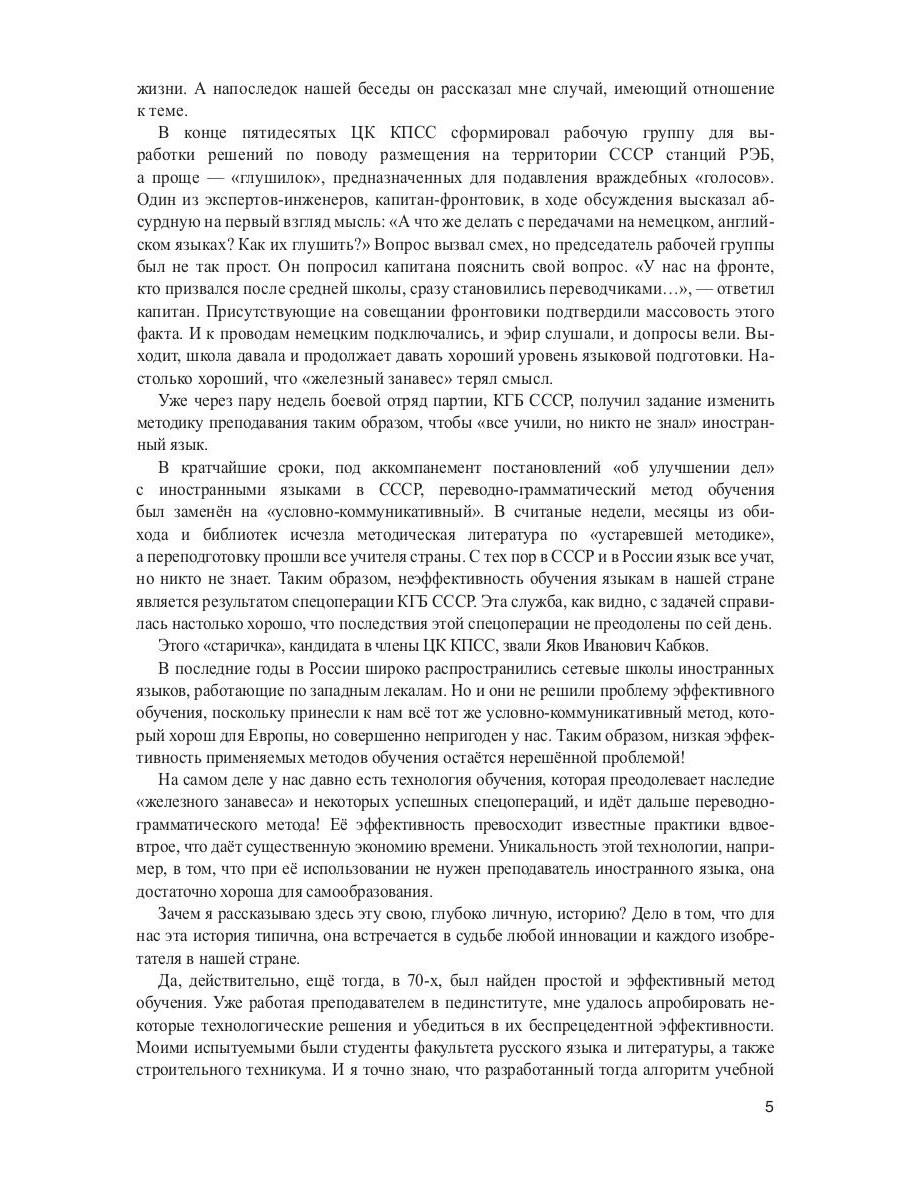 Учебное пособие для изучения английского языка методом параллельных текстов. «Параллельные тексты» являются составной частью природосообразной модели обучения, разработанной психологом Алексеем Кушниром. Принципиальное отличие этой модели в том, что в её основе лежит не лингвистика, а закономерности психофизиологии - механизмы работы мозга, психики, личности. Человек осваивает что бы то ни было благодаря именно этим механизмам, а не сообразно предметной парадигме математики, географии или лингвистики. Именно поэтому переход на природосообразные алгоритмы обучения позволяет значительно увеличить эффективность учебного процесса. Пособие предназначено для использования в учебном процессе, а также для самообразования.| Издательство | Т8 RUGRAM |