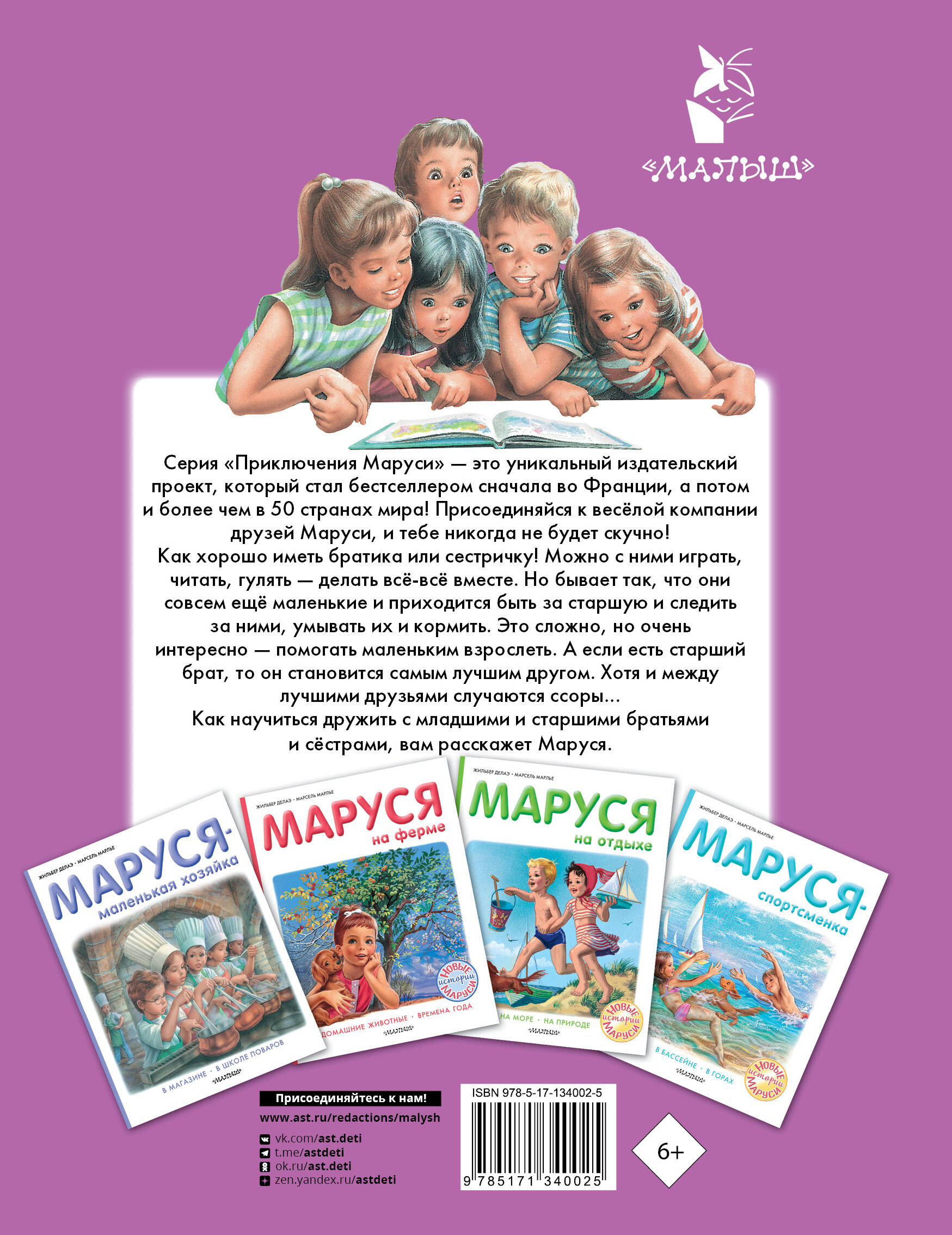 Серия "Приключения Маруси" - это уникальный издательский проект, который стал бестселлером сначала во Франции, а потом и более чем в 50 странах мира! Общий тираж книг больше 100 миллионов экземпляров. Про весёлую Марусю снимают мультфильмы, которые смотрят дети по всему миру. В книгу "Маруся - любимая сестричка" вошли две истории про эту замечательную девочку. В первой истории Маруся - маленькая няня своих племянников-близняшек и их брата. За малышами глаз да глаз: нужно быть очень внимательной. Но с ними так весело читать книжки, собирать пазлы и разговаривать обо всём. А во второй истории старший брат Маруси её обидел, и они поссорились. Стоит ли эта обида того, чтобы не разговаривать с любимым братом, даже если он иногда вредничает? В этой истории Маруся и сама понимает важную вещь - ведь она тоже иногда бывает врединой и задирает брата. Эта книга поможет детям понять, каково это иметь братьев и сестёр, как с ними общаться и что наши близкие - самые родные нам люди, несмотря ни на что. На русский язык книгу пересказала знаменитый переводчик, лауреат множества премий Наталья Мавлевич. Для младшего школьного возраста.| Издательство | ИЗДАТЕЛЬСТВО "АСТ" |