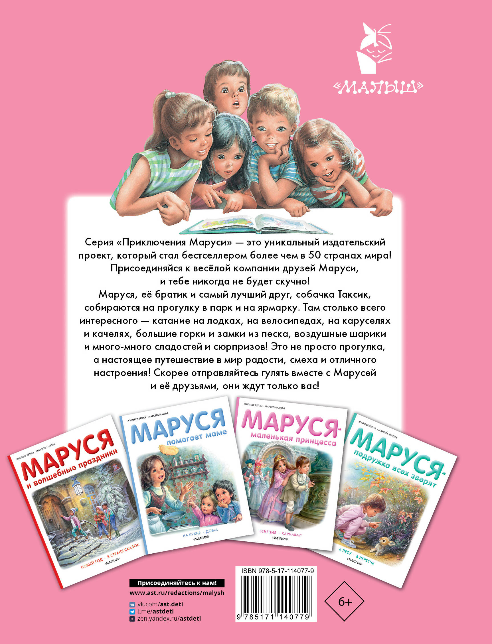 Серия "Приключения Маруси" - это уникальный издательский проект, который стал бестселлером сначала во Франции, а потом и более чем в 50 странах мира! Общий тираж книг более 100 миллионов экземпляров. Про весёлую Марусю снимают мультфильмы, которые с успехом идут в России и за рубежом. В книгу "Маруся на прогулке" вошли две истории о приключениях лучшей подружки всех мальчиков и девочек! Маруся, её братик и самый лучший друг, собачка Таксик, собираются на прогулку в парк и на ярмарку. Там столько всего интересного - катание на лодках, на велосипедах, на каруселях и качелях, большие горки и замки из песка, воздушные шарики и много-много сладостей и сюрпризов! Это не просто прогулка, а настоящее путешествие в мир радости, смеха и отличного настроения! Скорее отправляйтесь гулять вместе с Марусей и её друзьями, они ждут только вас! На русский язык книгу пересказала Н. Мавлевич. Для младшего школьного возраста.| Издательство | ИЗДАТЕЛЬСТВО "АСТ" |