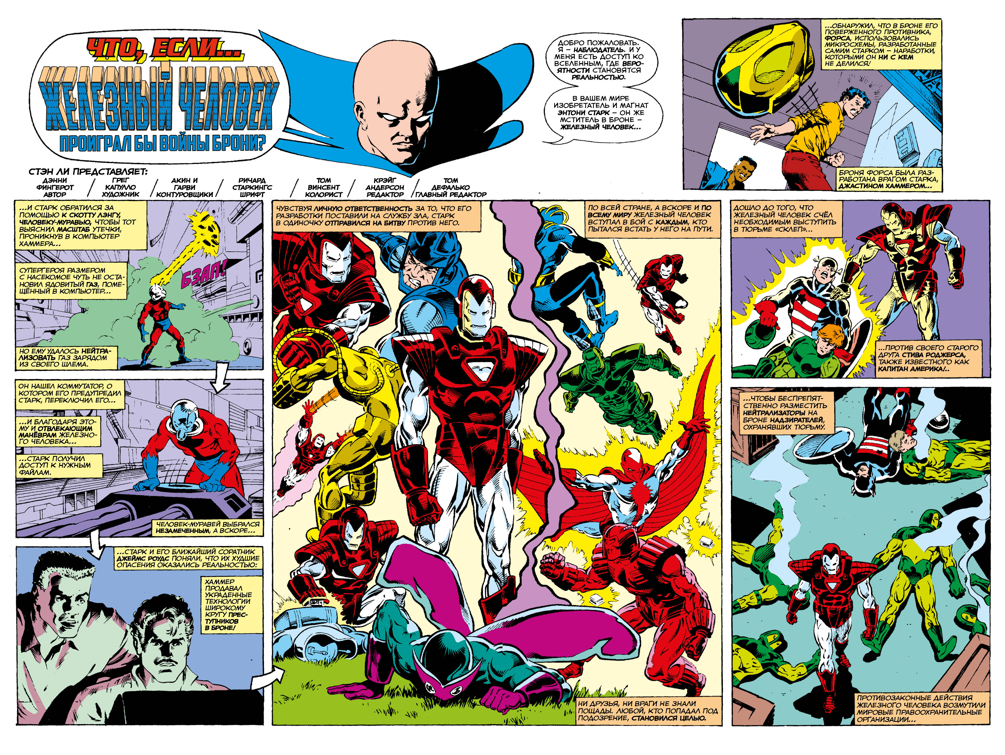Вместе с Наблюдателем мы попадаем в альтернативную вселенную, где величайший ум земли, гений-изобретатель Тони Старк не смог справиться с утечкой данных о своих технологиях, благодаря чему десятки суперзлодеев получили опаснейшие бронекостюмы. Теперь не только секретные данные оказались в руках врагов Тони, но и он сам! Все его друзья и коллеги в опасности. Справится ли Неуязвимый Железный Человек с такой напастью? В обычных комиксах - скорее всего, но в мирах «Что, если?..» мы никогда не можем быть уверены, что у истории будет счастливый конец...| Издательство | ООО "Издательство "Эксмо" |