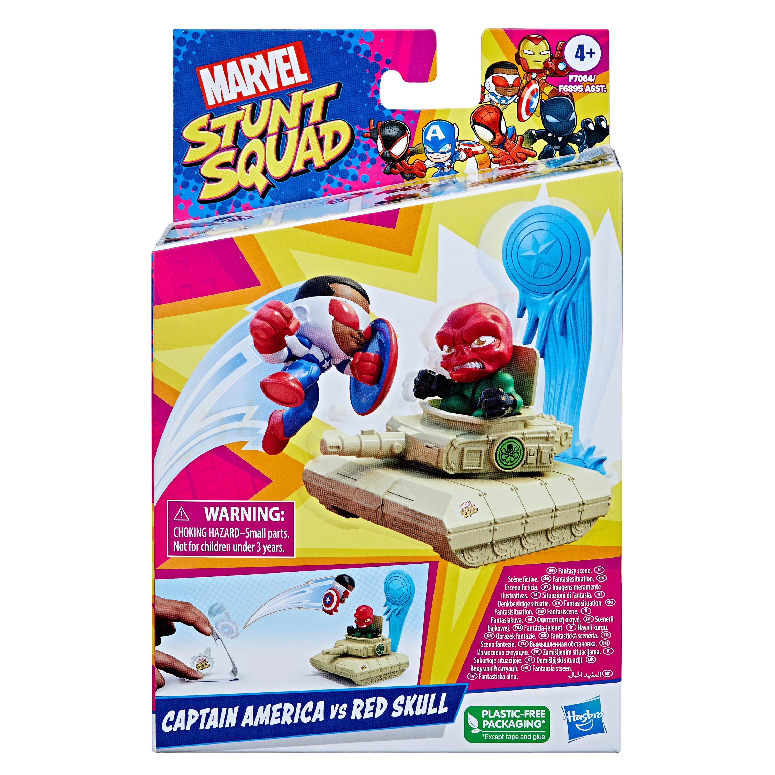 Присоединяйтесь к любимым героям и злодеям из мира Мстителей в битве за судьбу вселенной! Классический жанр игры "герой против злодея" нравится детям, а эти супермощные минифигурки сделают игру еще более захватывающей. Поместите своего героя на пусковую установку и запустите его, чтобы победить злодея. Новые игровые наборы Marvel Stunt Squad Smashin Heroes включают 2 фигурки, пусковую установку и цель. Все фигурки Marvel Stunt Squad совместимы со всеми игровыми наборами Stunt Squad.