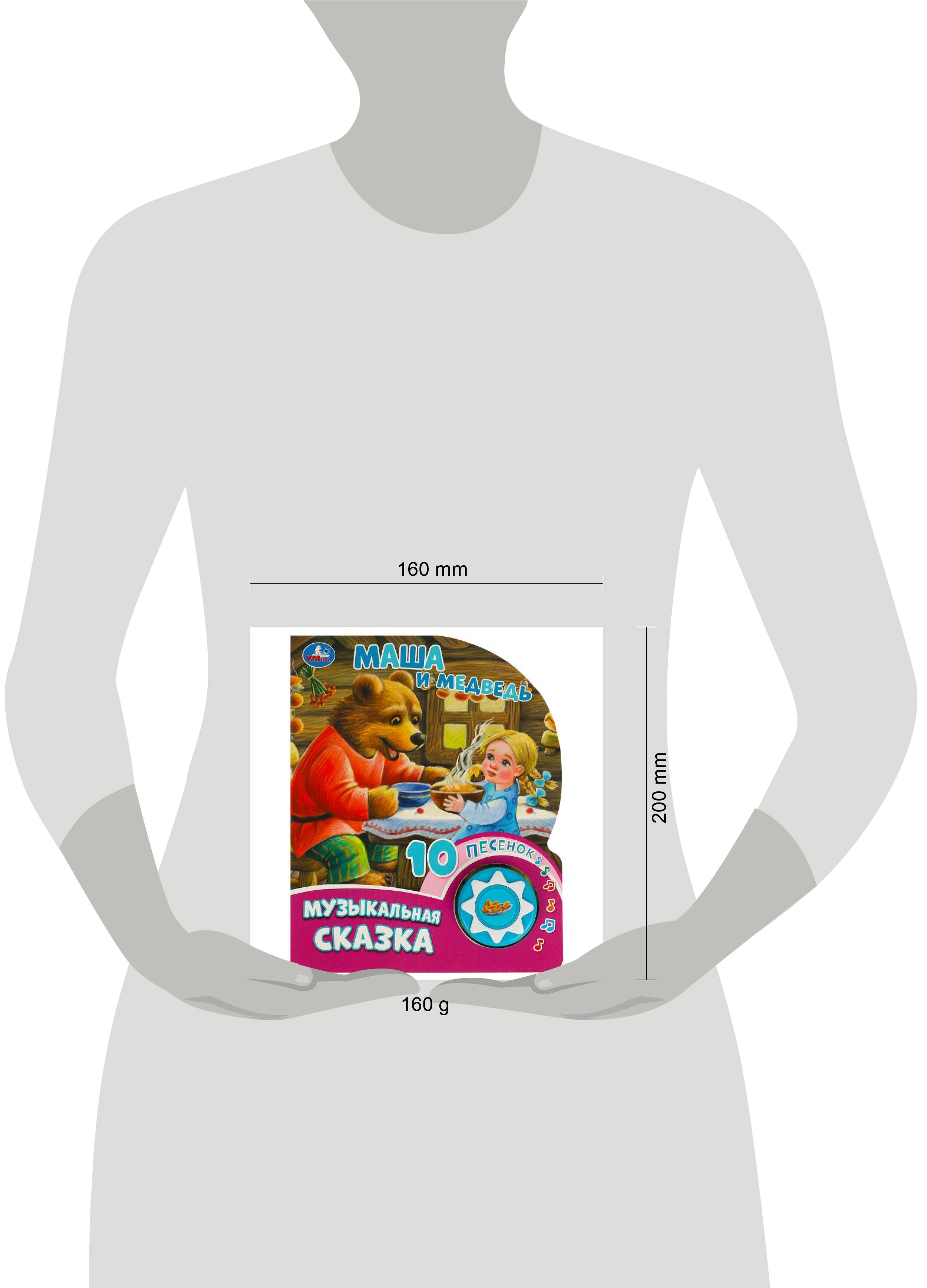 Озвученная книга "Маша и медведь" из серии "Музыкальная сказка" ТМ "УМка" станет прекрасным подарком для малыша: - 1 звуковая кнопка - 10 песен по мотивам сказки - русская народная сказка в обработке П. Доброй - красочные иллюстрации - плотные страницы - фигурная вырубка Ребёнок будет с удовольствием рассматривать яркие картинки, вместе с родителями читать любимую сказку, нажимать на кнопку с рисунком и слушать песенки по мотивам сказки. Одно нажатие на кнопку - песенка включится, второе нажатие - выключится, при третьем - зазвучит следующая композиция. Книжка сделана из плотного картона, поэтому родители могут не опасаться, что ребёнок порвёт странички. Благодаря компактному формату книгу удобно брать с собой в путешествие. Чтение музыкальной книги ТМ "УМка" и игра с ней развивают: - слуховое восприятие - мелкую моторику - фантазию - образное мышление - память Объём: 10 стр. Формат: 160 х 200 мм. Материал: картон + пластмасса. Работает от 1-ой батарейки типа CR2032 (в комплекте). Рекомендовано детям младшего дошкольного возраста.| Издательство | С-Маркет ООО |