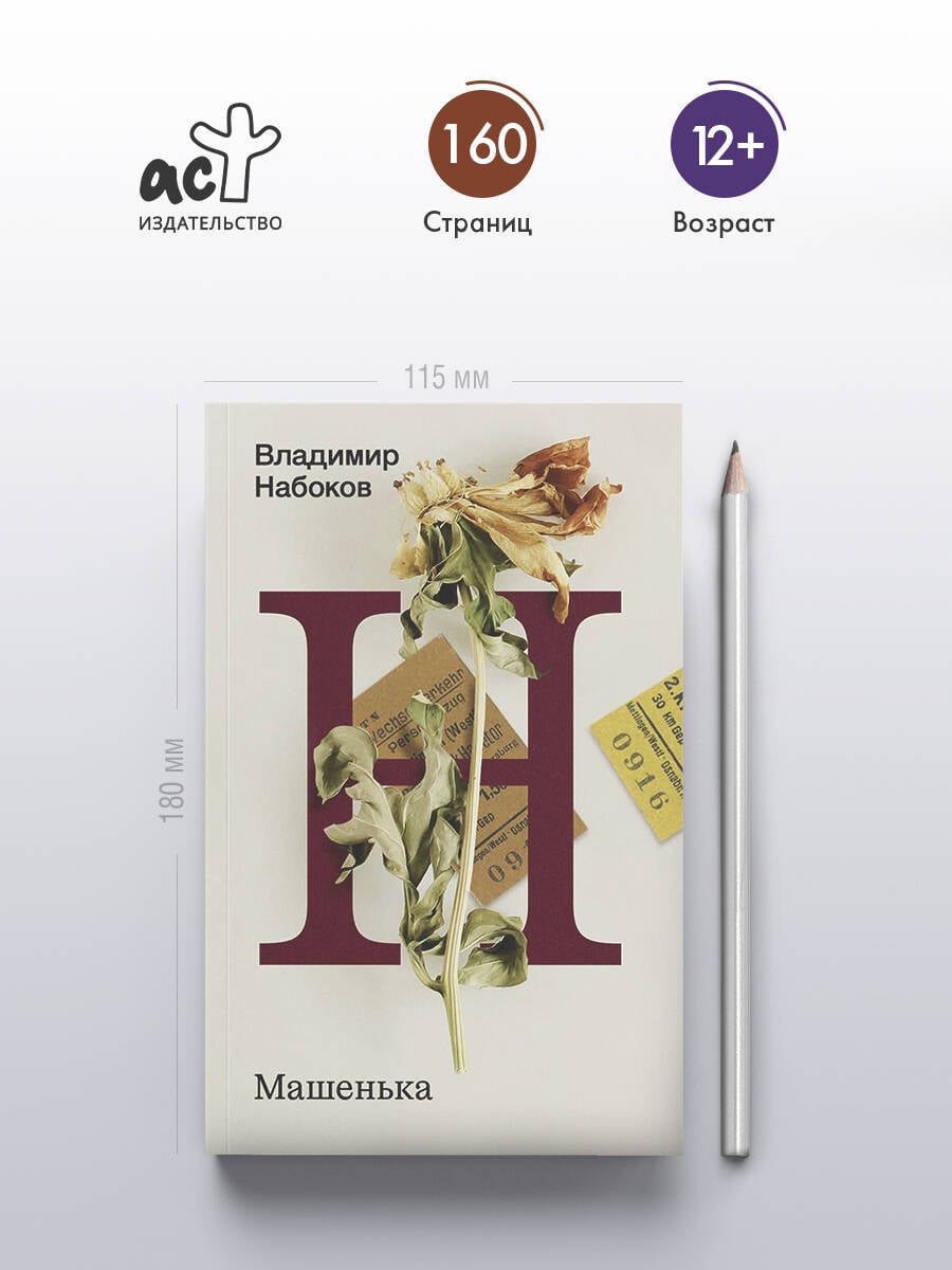 "Машенька" (1926) - первый и во многом автобиографический роман, написанный Владимиром Набоковым в Берлине и посвященный русскому прошлому писателя. Молодой эмигрант Лев Ганин в немецком пансионе заново переживает историю своей первой любви, оборванную революцией. Сила творческой памяти позволяет ему преодолеть физическую разлуку с Машенькой (прототипом которой стала возлюбленная Набокова Валентина Шульгина), воссозданные его воображением картины дореволюционной России оказываются значительнее и ярче окружающих его декораций настоящего.| Издательство | Издательство "АСТ" |