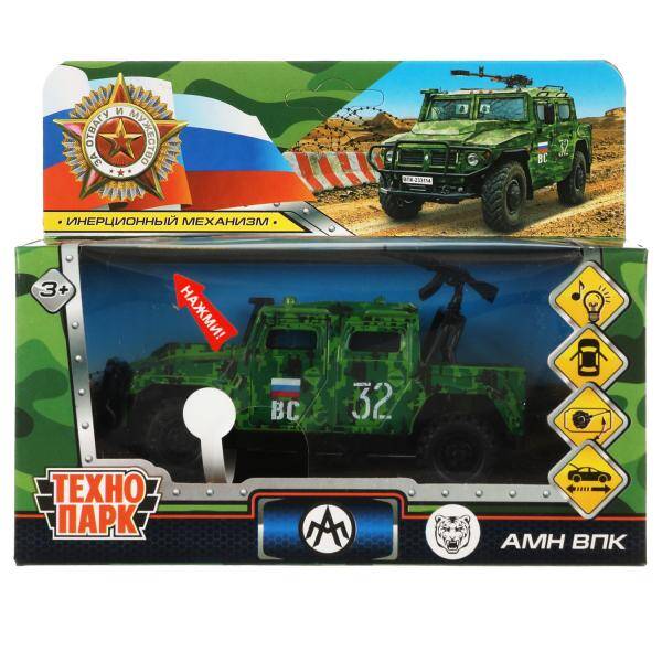 Металлическая модель "Военный внедорожник" ТМ "Технопарк" - прекрасный подарок для ребёнка: - открываются передние двери - открывается задняя стенка кузова Металлическая модель, выполненная с учётом всех особенностей прототипа, обязательно понравится вашему ребёнку. Благодаря открывающимся дверям, которые делают машинку максимально похожей на настоящую, всегда можно заглянуть к ней внутрь, чтобы убедиться - каждая деталь отлично проработана. Реалистичный дизайн данной модели позволит с головой погрузиться в игру, придумывая новые интересные сюжеты. Кроме того, эта игрушка познакомит малыша с видами военной техники Игра с моделью ТМ "Технопарк" развивает: - координацию движений - внимание - ловкость - фантазию и воображение Длина модели: 12 см. Материал: металл + пластмасса. Рекомендовано детям от 3-х лет.| Издательство | С-Маркет ООО |