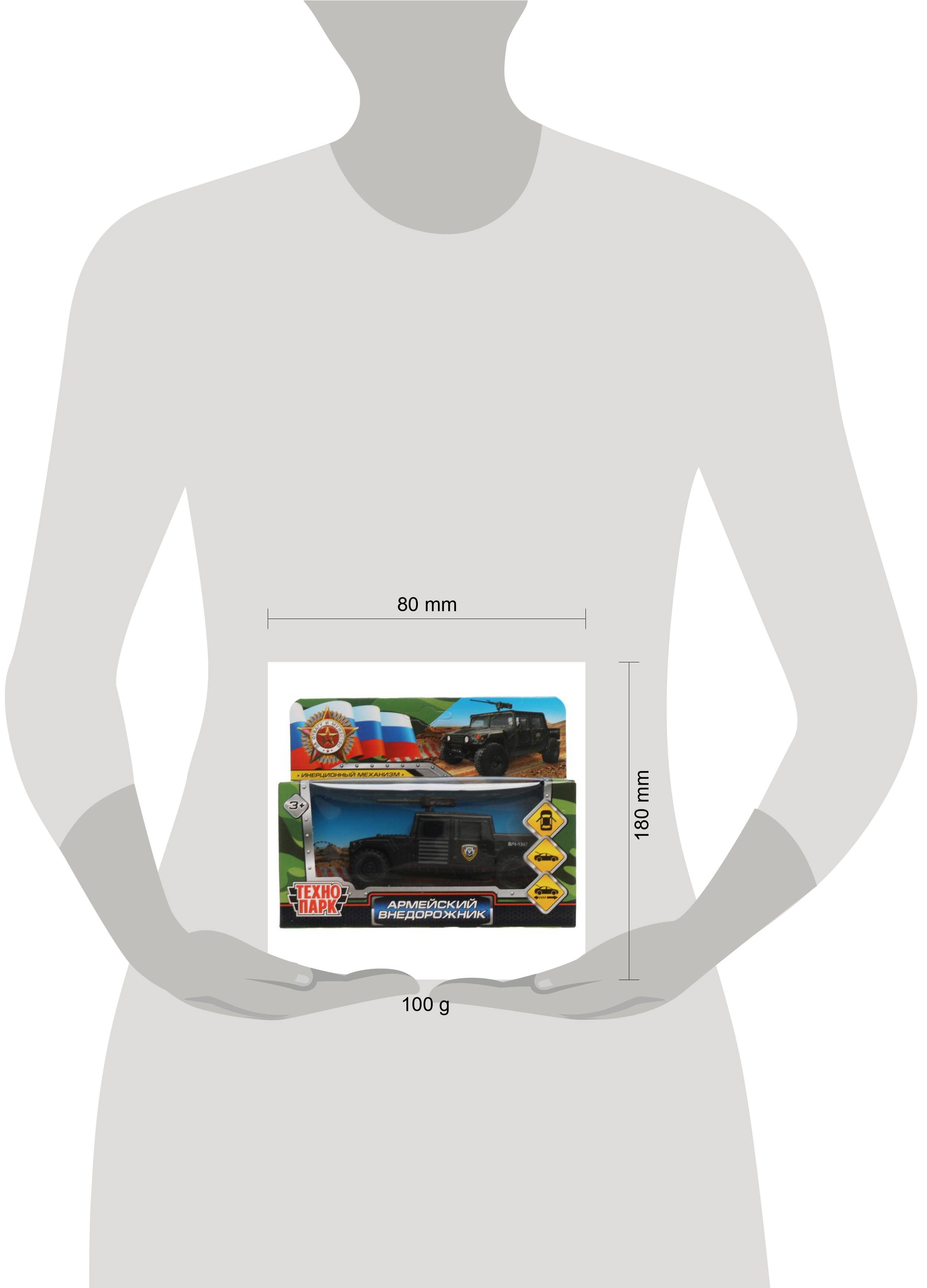 Металлическая модель "Военный внедорожник" ТМ "Технопарк" - прекрасный подарок для ребёнка: - открываются передние двери - открывается задняя стенка кузова Металлическая модель, выполненная с учётом всех особенностей прототипа, обязательно понравится вашему ребёнку. Благодаря открывающимся дверям, которые делают машинку максимально похожей на настоящую, всегда можно заглянуть к ней внутрь, чтобы убедиться - каждая деталь отлично проработана. Реалистичный дизайн данной модели позволит с головой погрузиться в игру, придумывая новые интересные сюжеты. Кроме того, эта игрушка познакомит малыша с видами военной техники Игра с моделью ТМ "Технопарк" развивает: - координацию движений - внимание - ловкость - фантазию и воображение Длина модели: 12 см. Материал: металл + пластмасса. Рекомендовано детям от 3-х лет.