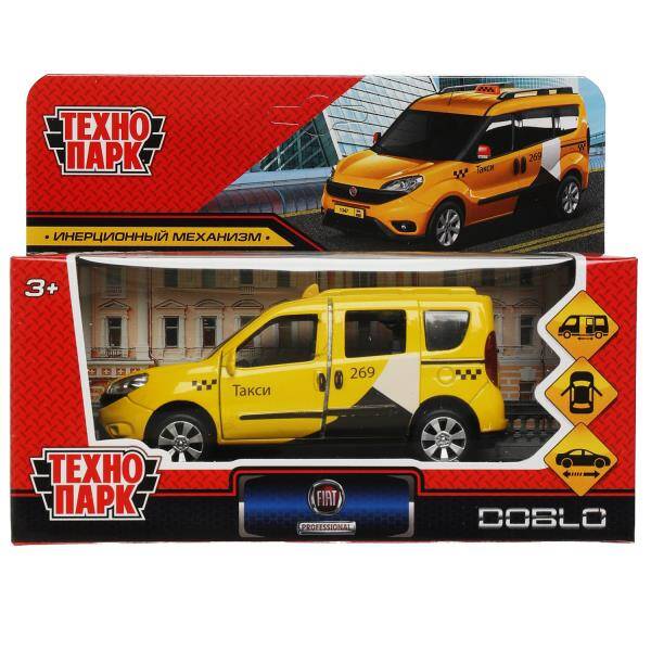 Аннотация: Машина металл FIAT DOBLO ТАКСИ длина 12 см, двери, инерц, желтый, кор. Технопарк в кор.2*36шт