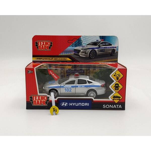 Аннотация: Машина металл свет-звук HYUNDAI SONATA ПОЛИЦИЯ 12 см, двер, багаж, ин, кор. Технопарк в кор.2*36шт