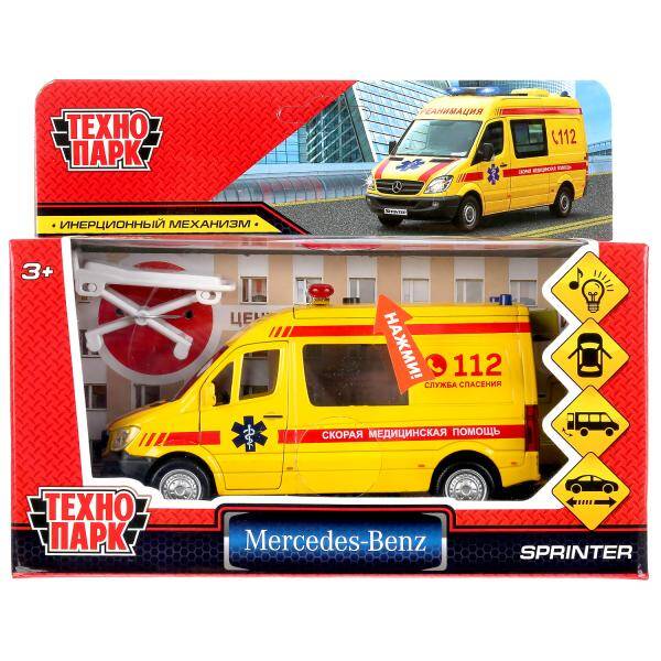 Машина металл свет-звук "mercedes-benz sprinter реанимация" 14см,инерц. в кор. Технопарк в кор2*32шт| Издательство | СИМБАТ ООО |