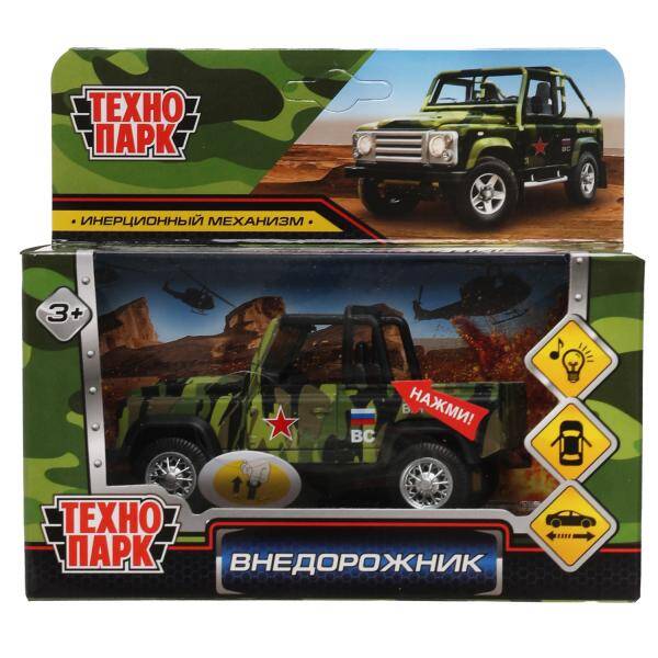 Машина металл свет-звук ВНЕДОРОЖНИК 10,5 см, инерц., КАМУФЛЯЖ, кор. Технопарк в кор.2*120шт