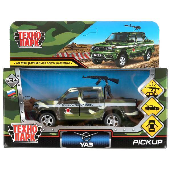 Коллекционная металлическая машина "Военный УАЗ Pickup с пулеметом" ТМ "Технопарк" порадует юного любителя военной техники своим дизайном и функционалом: - открываются двери - открывается багажник - подвижные элементы - инерционный механизм (поставьте машинку на ровную поверхность, потяните за корпус назад, отпустите и она начнёт быстро двигаться вперёд) Металлический пикап, выполненный с учётом всех особенностей прототипа, станет отличным подарком для вашего ребенка. Благодаря открывающимся дверям и багажнику, которые делают машинку максимально похожей на настоящую, всегда можно заглянуть к ней внутрь, чтобы убедиться - каждая деталь отлично проработана. Реалистичный дизайн игрушки с подвижным пулеметом на крыше позволит с головой погрузиться в игру и вдохновит юного героя на новые игровые сюжеты. Игра с инерционной машинкой ТМ "Технопарк" знакомит с различными моделями машин и видами техники и тренирует: - координацию движений - внимание - ловкость Длина: 12 см. Размер упаковки: 17,5 х 7,5 х 6,7 см. Материал: металл + пластмасса. Рекомендовано детям от 3 лет.| Издательство | С-Маркет ООО |