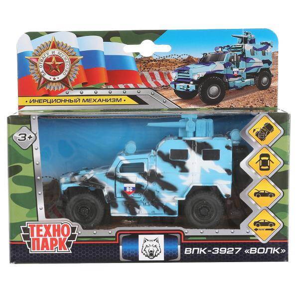 Аннотация: Машина металл ВПК -3927 волк, 12 см, дв, баг., подв.дет., инерц., кор. Технопарк в кор.2*24шт