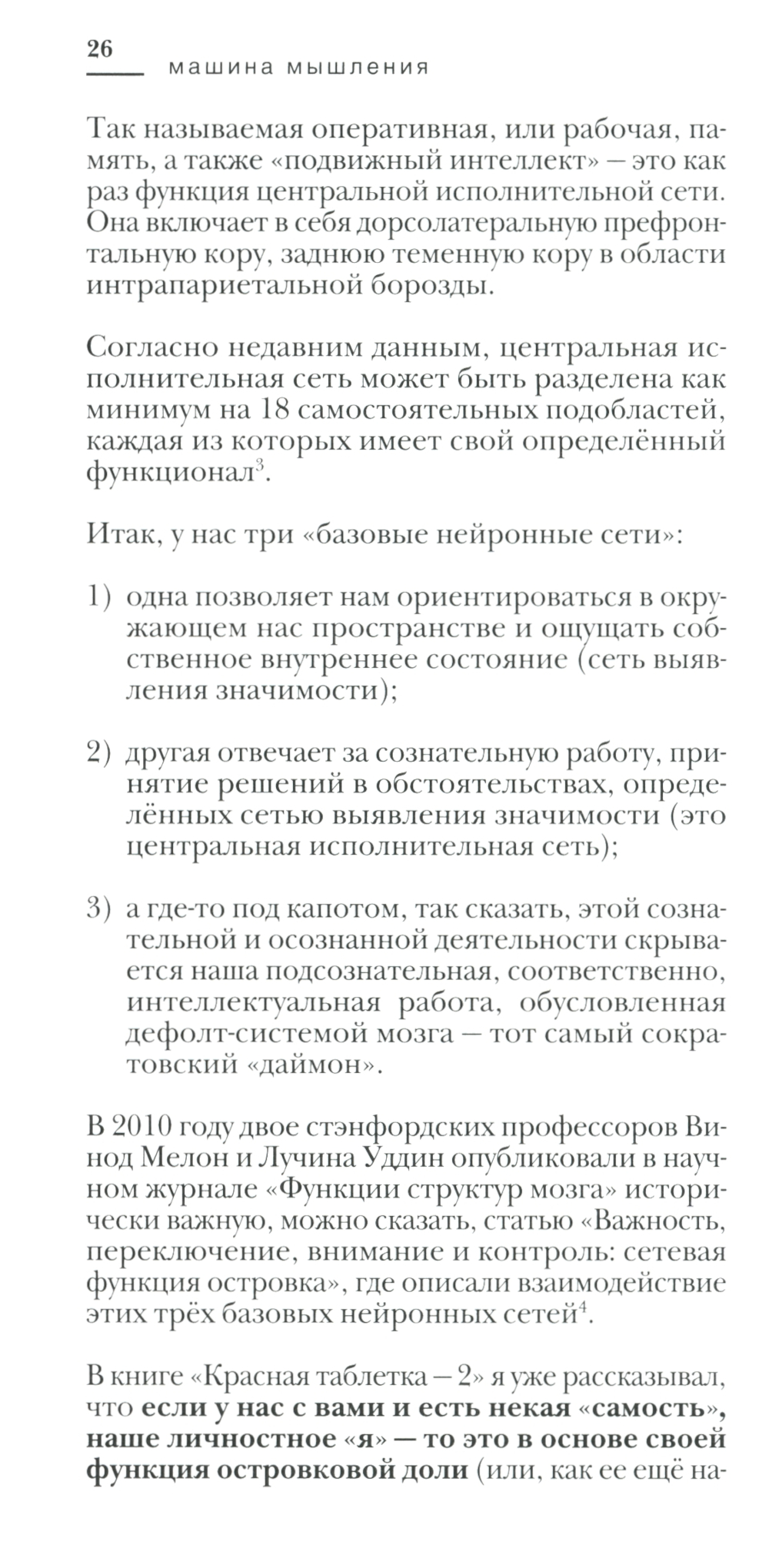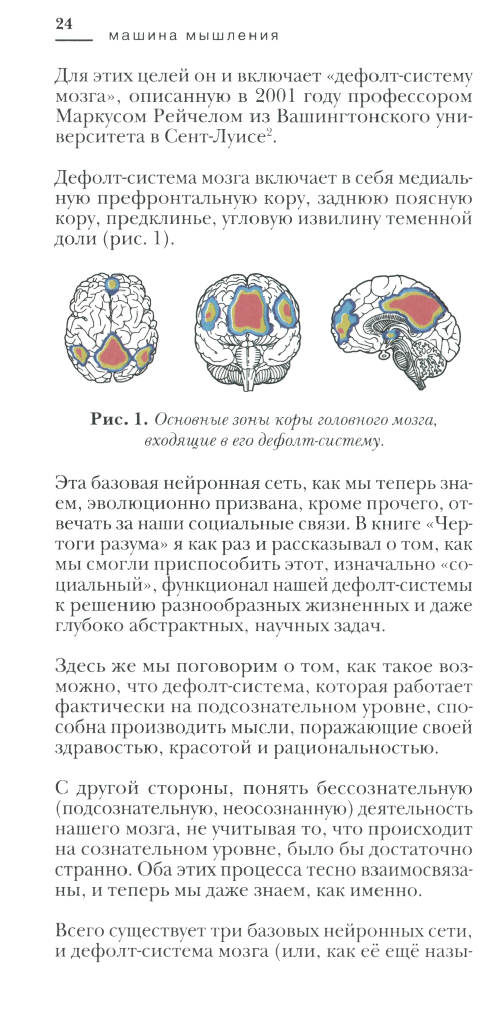 Это практическое пособие в освоении инструментов мышления. «Машина мышления» - книга о том, как наш мозг создаёт нашу с вами психическую деятельность. Мы обсудим, как он думает в нас, создавая при этом нас самих и наше сознание. Мы узнаем о трёх «зеркалах мозга» - том механизме, благодаря которому «разговор», который происходит у нас в голове, никогда не прекращается. Разберемся в том, как наш мозг собирает интеллектуальные объекты - то, что является образами и мыслями. Смыслы, заложенные в «Машине мышления» весьма контринтуитивны, и потому - головоломны. Но именно так всегда и сообщает о себе всё по-настоящему новое и интересное.| Издательство | Капитал |