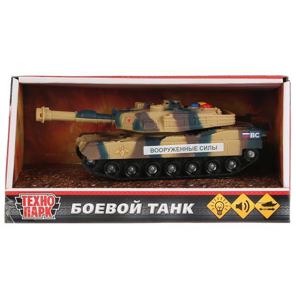 Аннотация: Машина на бат. свет+звук "БОЕВОЙ ТАНК", длина 14,5см, пластик, инерц. в кор. Технопарк в кор.2*36шт