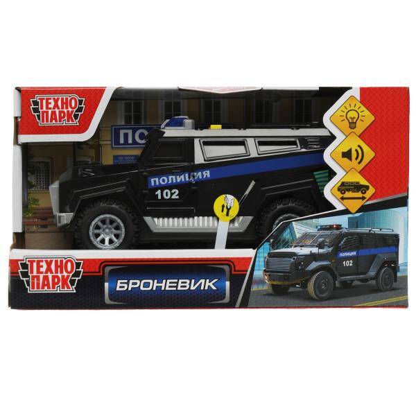 Аннотация: Машина пластик свет-звук БРОНЕВИК ПОЛИЦИЯ 18 см, своб. ход, кор. Технопарк в кор.48шт