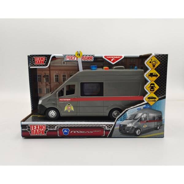 Аннотация: Машина пластик свет-звук ГАЗЕЛЬ NEXT РОСГВАРДИЯ 22 см, двери, инерц, кор. Технопарк в кор.2*18шт