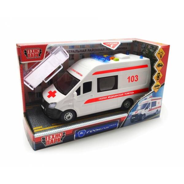 Аннотация: Машина пластик свет-звук ГАЗЕЛЬ NEXT СКОРАЯ 22,5 см, двери, инерц, кор. Технопарк в кор.2*18шт