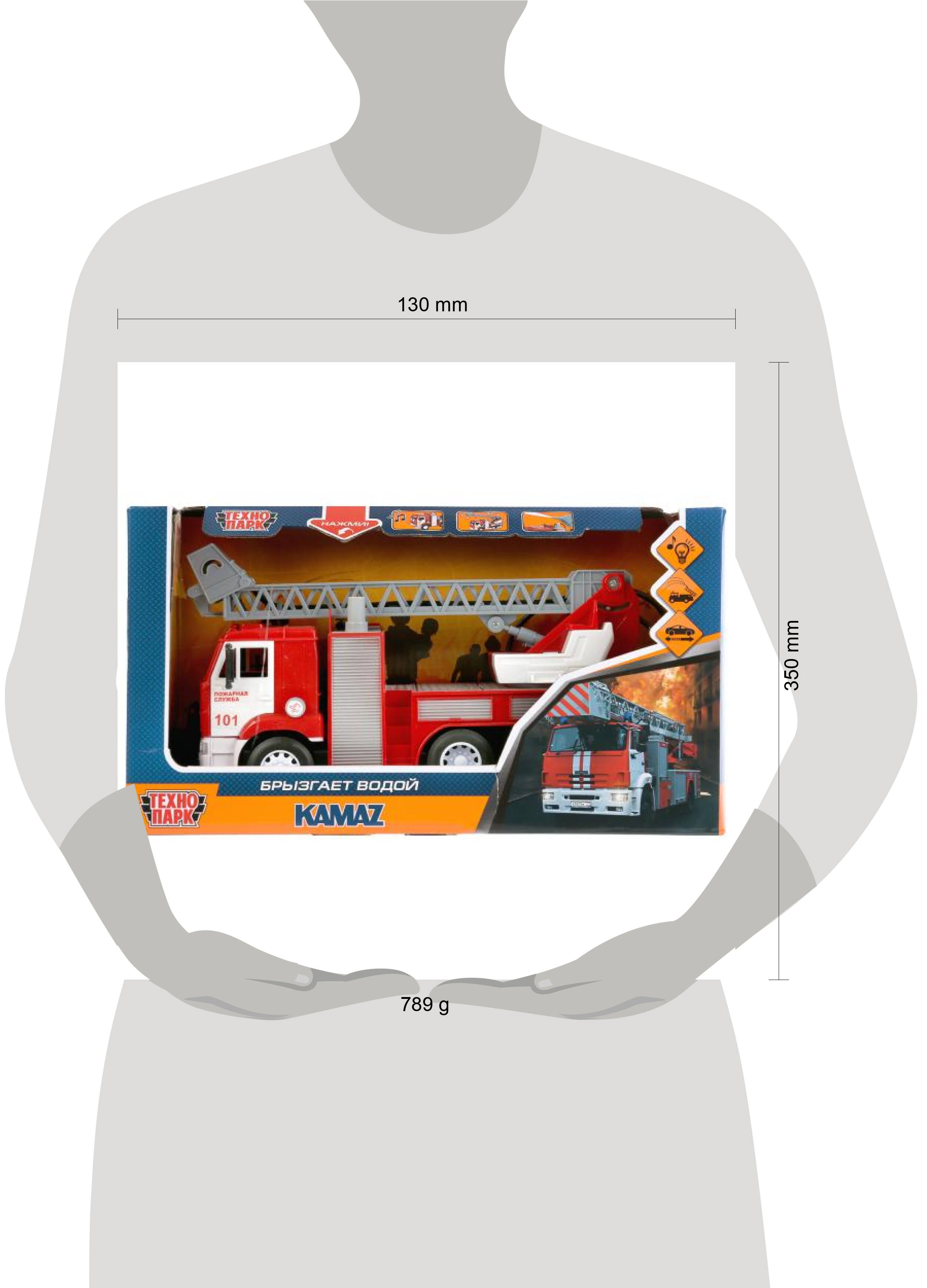 Машина "КАМАЗ: пожарная машина" ТМ "Технопарк" - очень быстрая, ведь ей нужно успеть на место происшествия. Играя с ней, ребёнок почувствует себя настоящим пожарным спасателем. Функции: - звуковые эффекты - световые эффекты - подвижные детали - открываются двери - брызгает водой - инерционный механизм (если её потянуть назад и отпустить, то она начнёт двигаться вперёд) Игра с инерционной машинкой тренирует координацию движений, внимание, ловкость, звуковое и световое восприятие, знакомит юного автолюбителя с видами пожарной техники. Компактные размеры машинки позволят малышу брать её с собой на прогулку или в гости к друзьям. Длина: 26 см. Материал: пластмасса. Укомплектовано 3 батарейками LR44 (батарейки меняются). Рекомендовано детям от 3 лет.| Издательство | С-Маркет ООО |