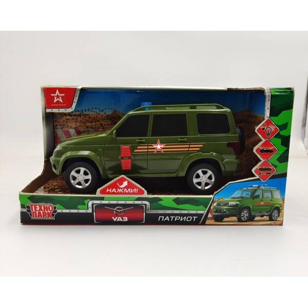 Аннотация: Машина пластик свет-звук УАЗ ПАТРИОТ АРМИЯ РОССИИ 22 см, баг, 2 кн, ин, кор. Технопарк в кор.2*18шт