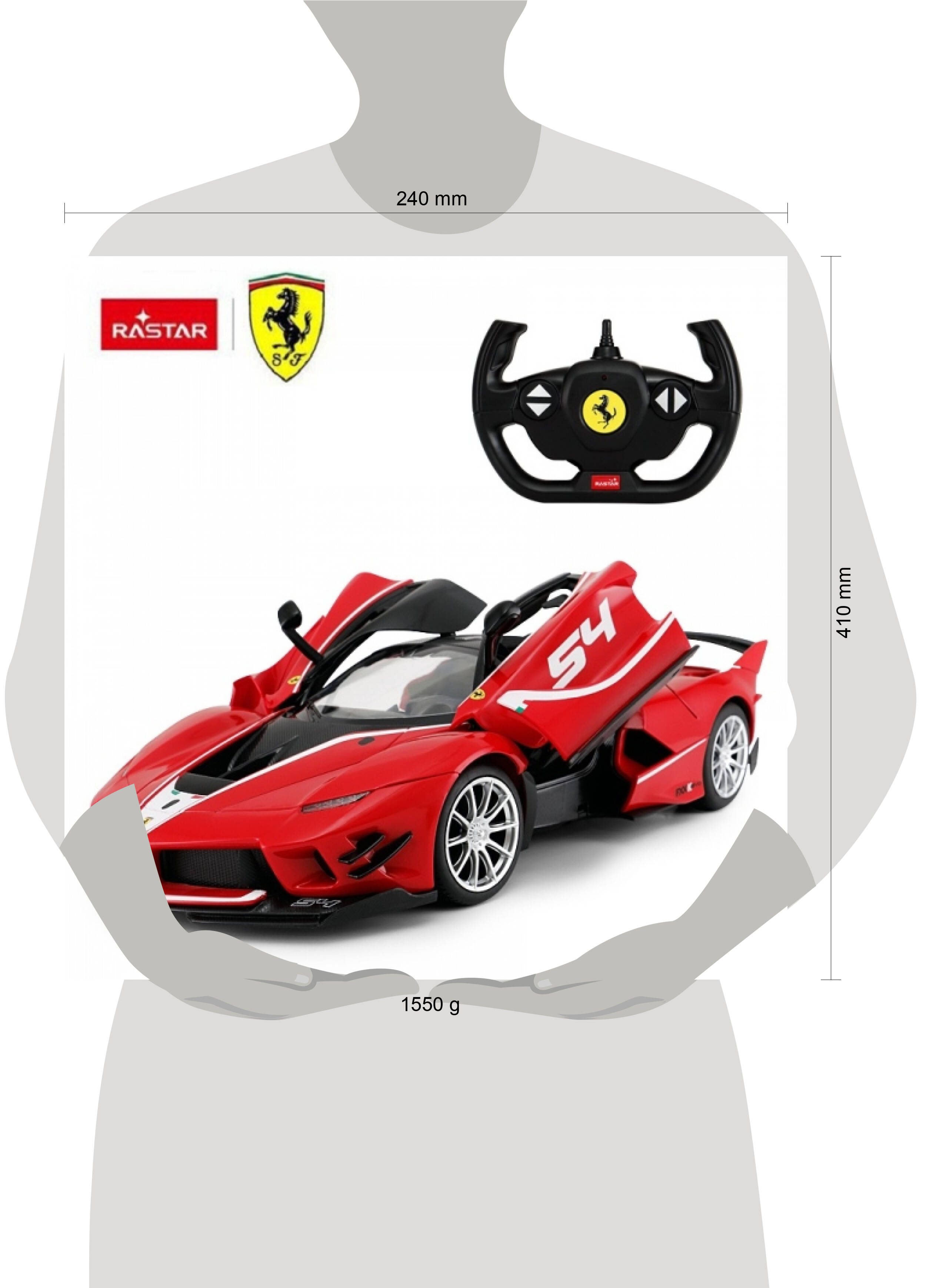 Радиоуправляемая модель машины "Ferrari FXX K Evo" ТМ "Rastar" станет прекрасным подарком для юного автолюбителя: - масштаб 1:14 - двери открываются вручную - манёвренность - удобный пульт д/у - движение вперёд-назад/вправо-влево - детальная проработка салона Ребёнка увлечёт игра с моделью роскошного спортивного автомобиля, выполненной с учётом всех особенностей прототипа. Реалистичный дизайн данной модели позволит с головой погрузиться в игру, придумывая новые интересные сюжеты. Игра с радиоуправляемой машинкой ТМ "Rastar" знакомит ребёнка с марками автомобилей, а также развивает: - координацию движений - внимание - ловкость - фантазию Длина: 35 см. Размер упаковки: 24 x 41 x 18 см. Работает от 5-ти батареек типа АА (не входят в комплект). Материал: пластмасса + металл. Рекомендовано детям от 6-ти лет.
