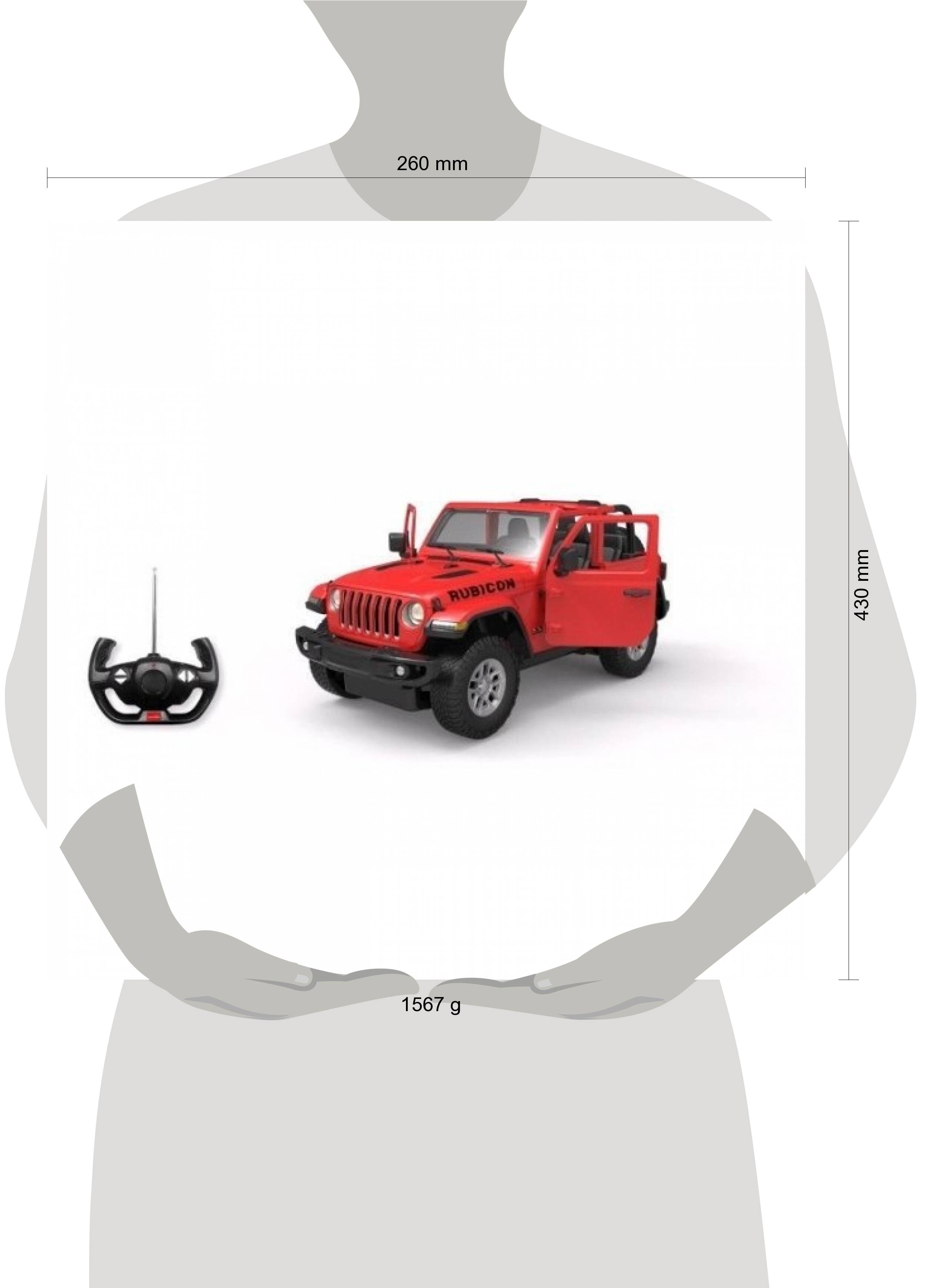 Колёса мощного джипа с плотной резиной позволяют машине проходить даже сложные препятствия. Играйте в своё удовольствие и устраивайте гонки с друзьями. Игра с радиоуправляемой машинкой тренирует координацию движений, внимание, ловкость, знакомит ребёнка с моделями машин. Функционал джипа: - Может ехать во все стороны (вперёд-назад, влево-вправо); - С подвижными деталями: двери открываются (вручную). Комплектация: - Стильный ярко-красный быстрый джип, точная копия оригинала, выполнен в масштабе 1:14; - Удобный пульт управления. Размеры игрушки: 30,2х14х13,4 см... дальше ". Работает от 5-ти батареек АА (пальчиковые).