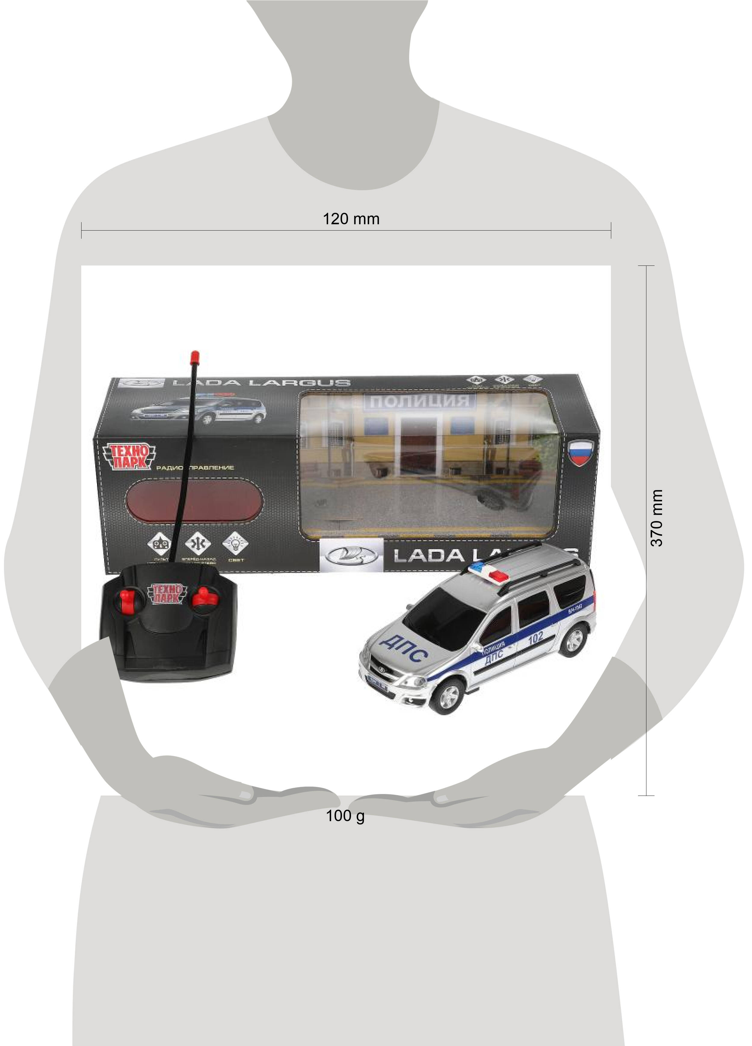 Машина р/у LADA LARGUS ПОЛИЦИЯ 18 см, свет, серебр, кор. Технопарк в кор.2*24шт