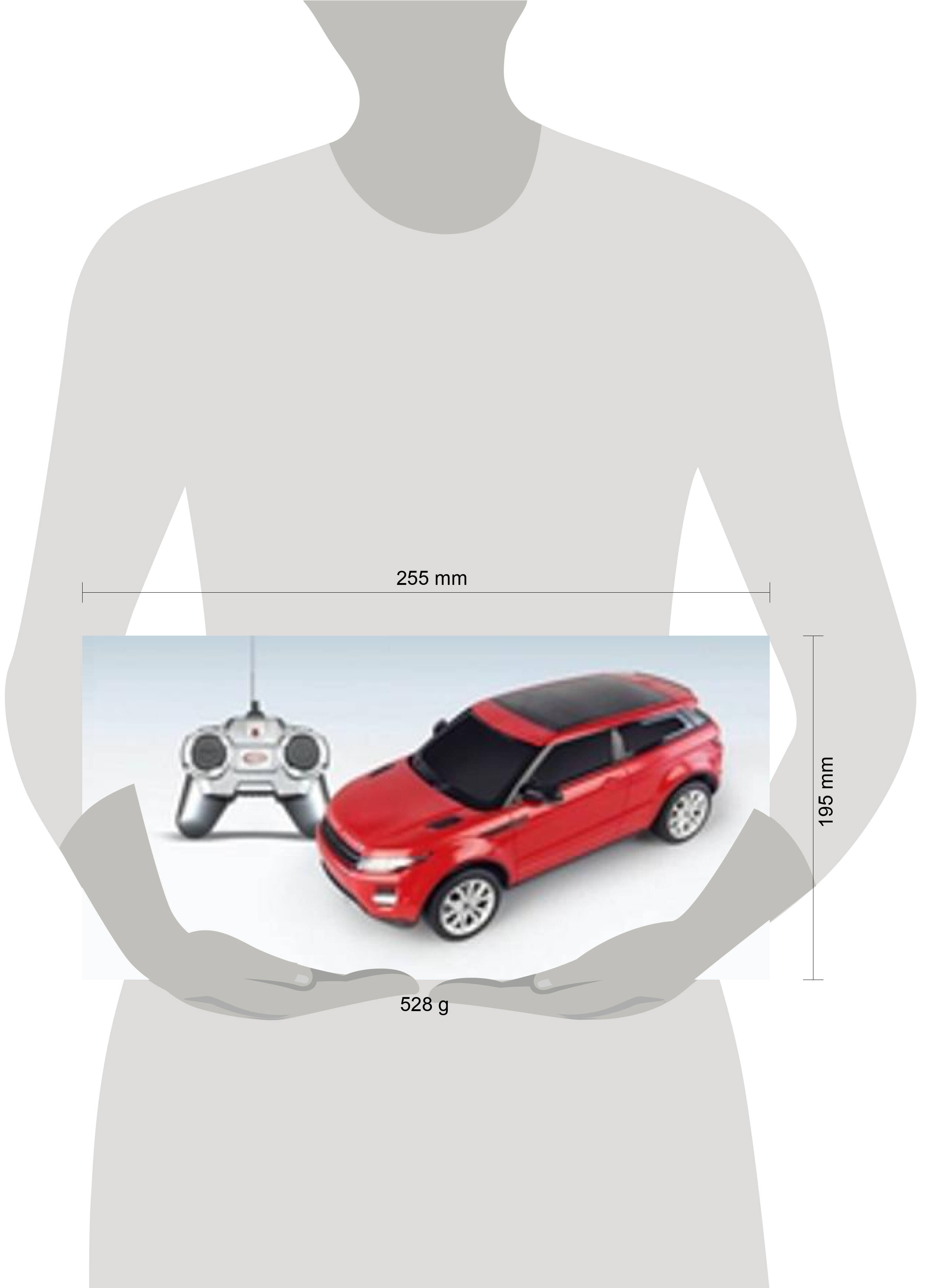 Особенности электромобиля Range Rover Evoque: • Машина может осуществлять движение вперед, назад, вправо и влево. • Тонированные стекла. • Радиус действия пульта до 45 метров. • Пульт радиоуправления на частоте 27MHz. • Максимальная скорость: 7 км/ч. • Материал: пластмасса, элементы из металла, резина. • Масштаб: 1:24. Комплект: машинка, пульт управления. Тип батареек: 5x AA / LR6 1.5V, 1 x 9V типа "Крона" (в набор не входят). Размер игрушки: 20.7х9.6х7.6 см. Возраст: с 5 лет. В ассортименте 2 цвета без возможности выбора.