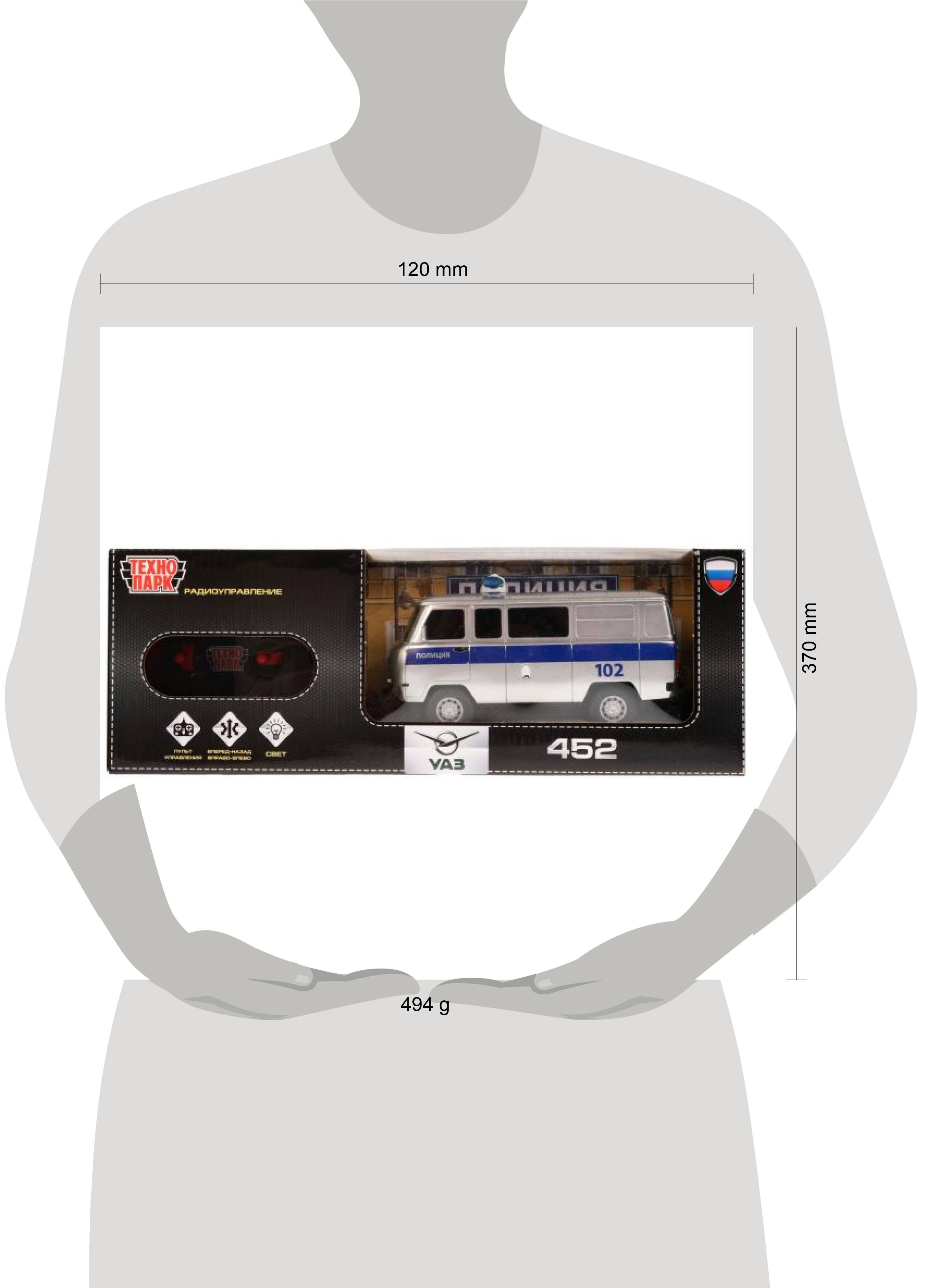 Машина р/у УАЗ 452 ПОЛИЦИЯ, 18 см, свет, сереб, кор. Технопарк в кор.2*24шт