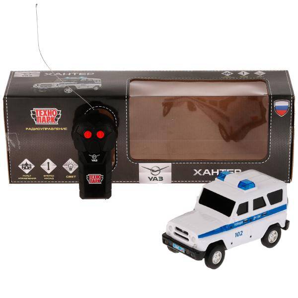 Машина р/у УАЗ ХАНТЕР ПОЛИЦИЯ 15 см, свет, белый, кор. Технопарк в кор.36шт