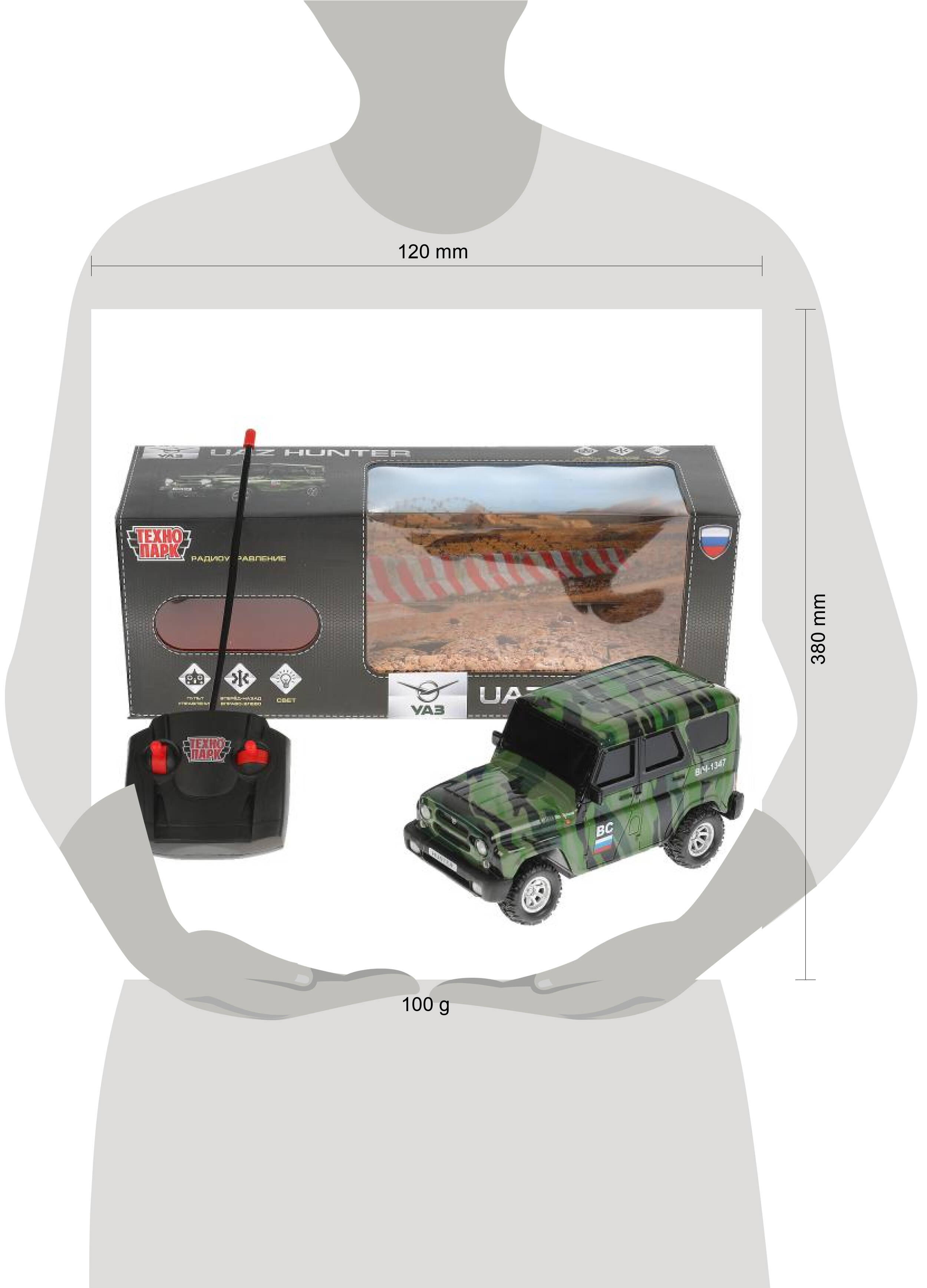 Аннотация: Машина р/у UAZ HUNTER 18 см, свет, камуф, кор. Технопарк в кор.2*24шт