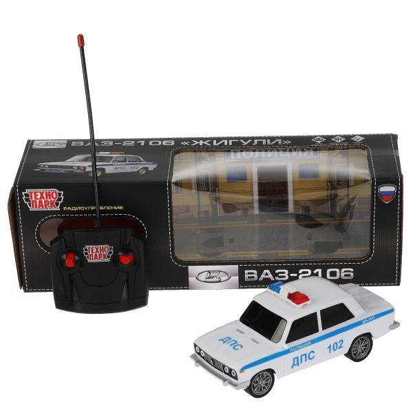 Машина р/у ВАЗ-2106 ПОЛИЦИЯ 18 см, свет, бел, кор. Технопарк в кор.24шт