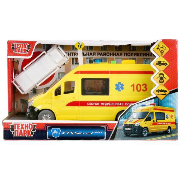 Аннотация: Машина свет+звук "газель некст реанимация" 22,5см, пластик, откр.двери, инерц. Технопарк в кор2*18шт