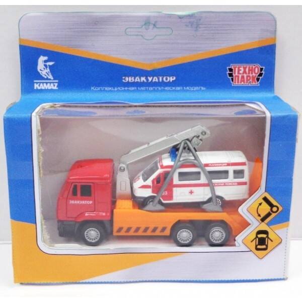Модель выполнена реалистично, оснащена инерционным механизмом и подвижным устройством для погрузки машин. Размер металлического эвакуатора 12 см., двери открываются. В набор входит модель газели "Скорая помощь" размером 7,5 см. Играя с набором, ребенок сможет придумать интересные и захватывающие игры и сюжеты, развивая фантазию и мелкую моторику рук. Рекомендовано детям от 3-х лет.| Издательство | С-Маркет ООО |