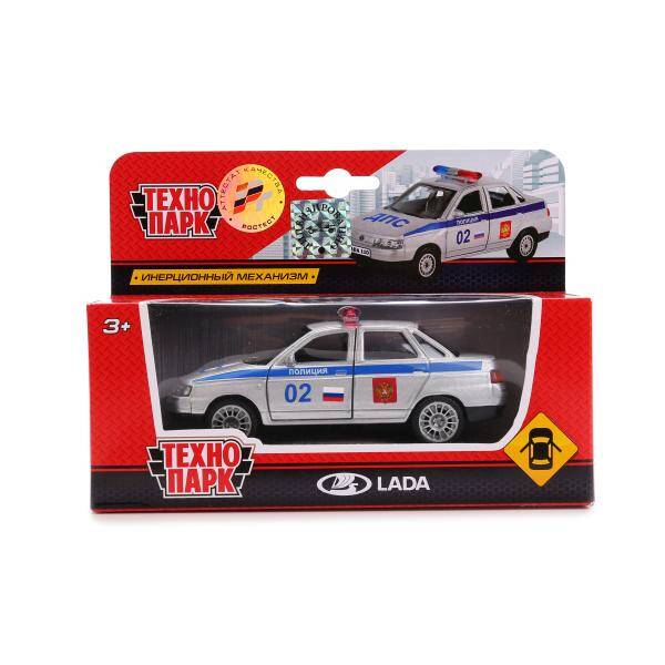 МАШИНА "ТЕХНОПАРК" МЕТАЛЛ. ИНЕРЦ. LADA 110 ПОЛИЦИЯ 12СМ, ОТКРЫВ. ДВЕРИ В РУСС. КОР. в кор.2*24шт