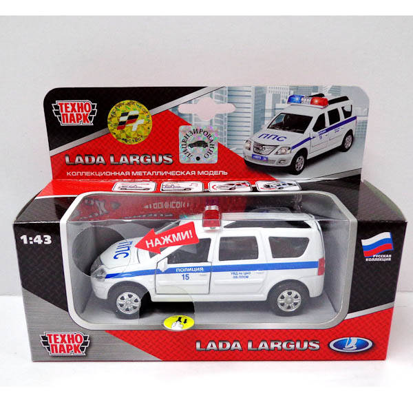 МАШИНА "ТЕХНОПАРК" МЕТАЛЛ. ИНЕРЦ. ЛАДА ЛАРГУС, ПОЛИЦИЯ, СВЕТ+ЗВУК, ОТКРЫВ. ДВЕРИ В КОР. в кор.2*24шт