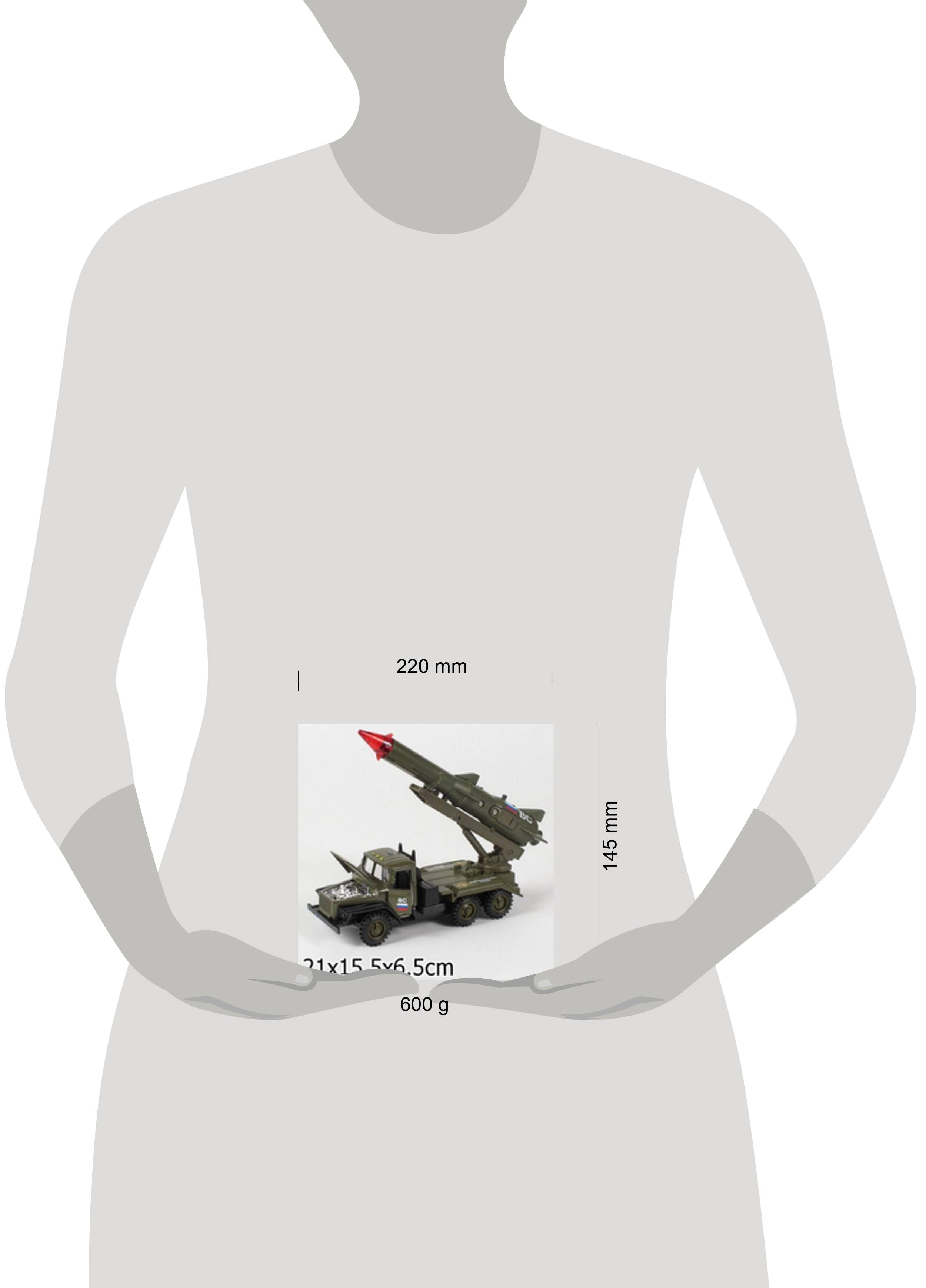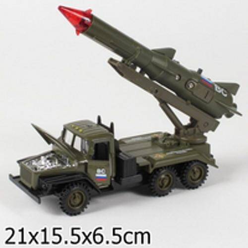 Машина металлическая инерционная. Функции: свет (работающие фары и подсветка наконечника ракеты); звук, характерный для данной модели грузовика; открываются двери и капот; подвижная платформа с ракетой. Игрушка работает от батарейки AG13, входит в комплект. Возраст: с 3 лет.