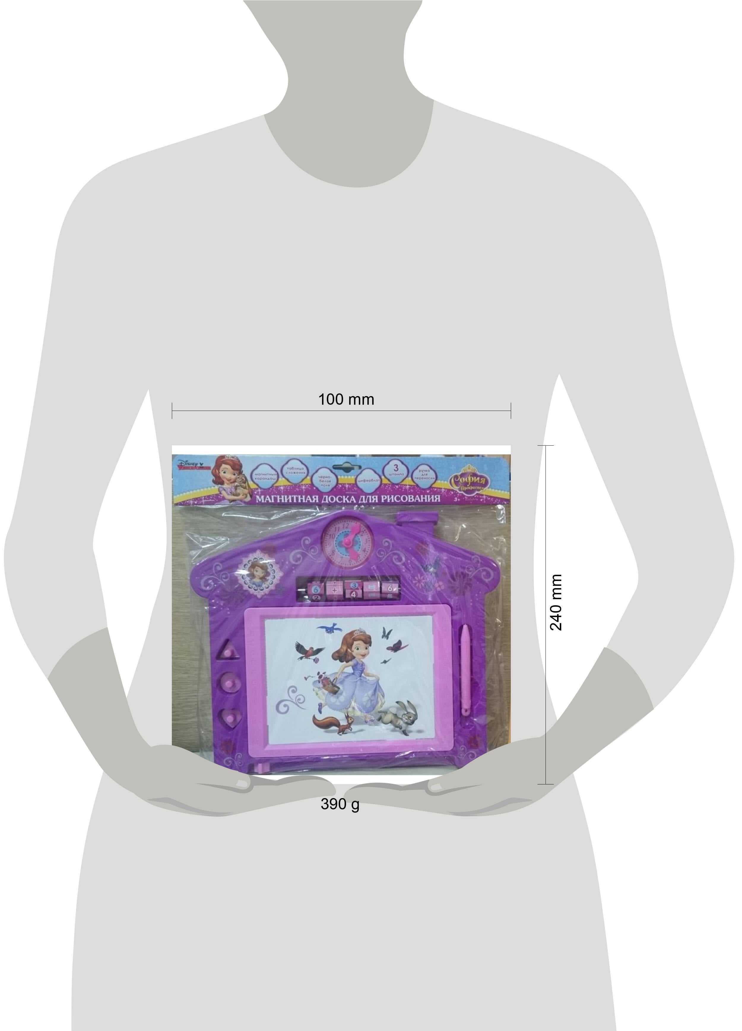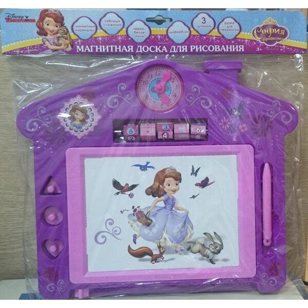 Магнитная доска для рисования "Дисней. София прекрасная", с ручкой для переноски, 3 штампа, черно-белое поле, магнитный карандаш, циферблат, вращающие детали.| Издательство | С-Маркет ООО |