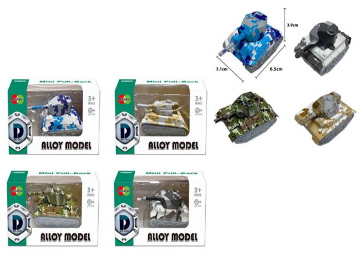 Аннотация: Машинка металлическая инерц. "Танк"(6,5х3,9х3,1 см) (4 вида микс)в коробке ( Арт. 2103202)