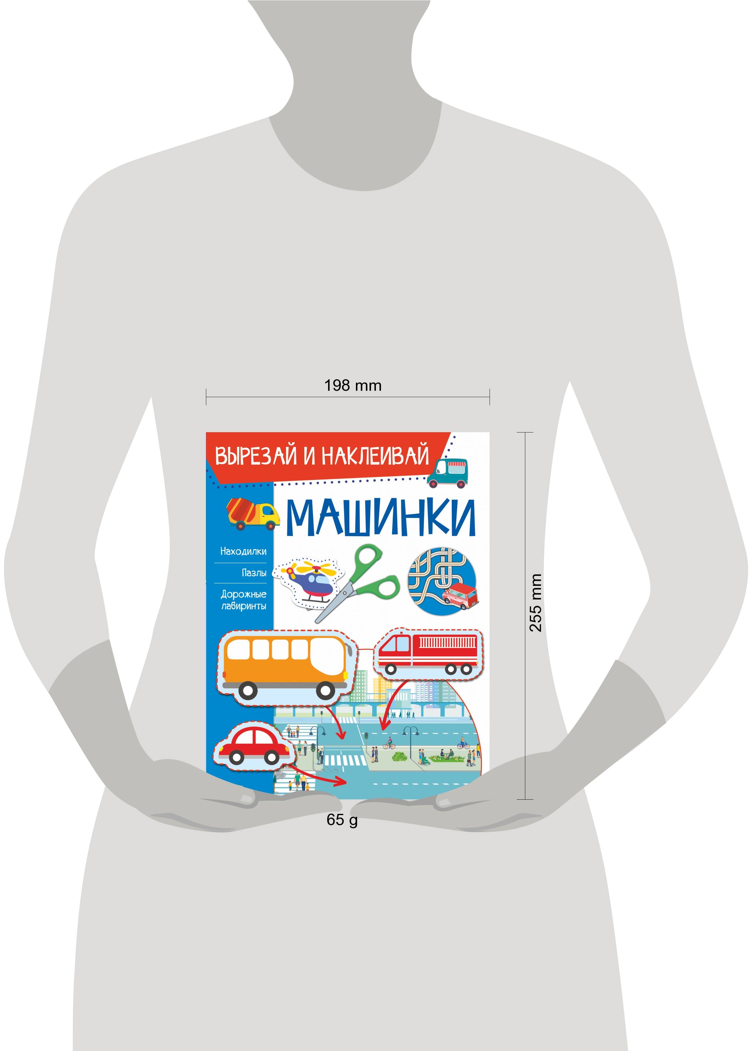 "Вырезай и наклеивай" - уникальная серия развивающих книг. Каждое издание - это книга и альбом для творчества 2 в 1. Ведь всем известно, что знания усваиваются малышом гораздо лучше во время игры. Именно поэтому мы создали книги, в которых ваш ребёнок становится активным участником учебного процесса - он рисует и считает, ищет отличия и находит пары, вырезает и наклеивает, фантазирует и сочиняет. Всё это способствует его всестороннему развитию: тренирует внимание и наблюдательность, прививает усидчивость и аккуратность, развивает пространственное мышление и воображение, расширяет словарный запас и кругозор. Что же требуется от родителей? Совсем немного: - предоставить ребёнку безопасные ножницы и клей; - прочитать задание и объяснить, что нужно делать; - помочь (если потребуется) вырезать детали внизу страницы; - наклеить готовые детали в нужное место на картинке; - обязательно похвалить малыша за его успехи. В этой книге изучаем технику и транспорт, собираем пазлы, ищем отличия, рисуем дороги и, конечно, вырезаем и наклеиваем машинки!| Издательство | ИЗДАТЕЛЬСТВО "АСТ" |