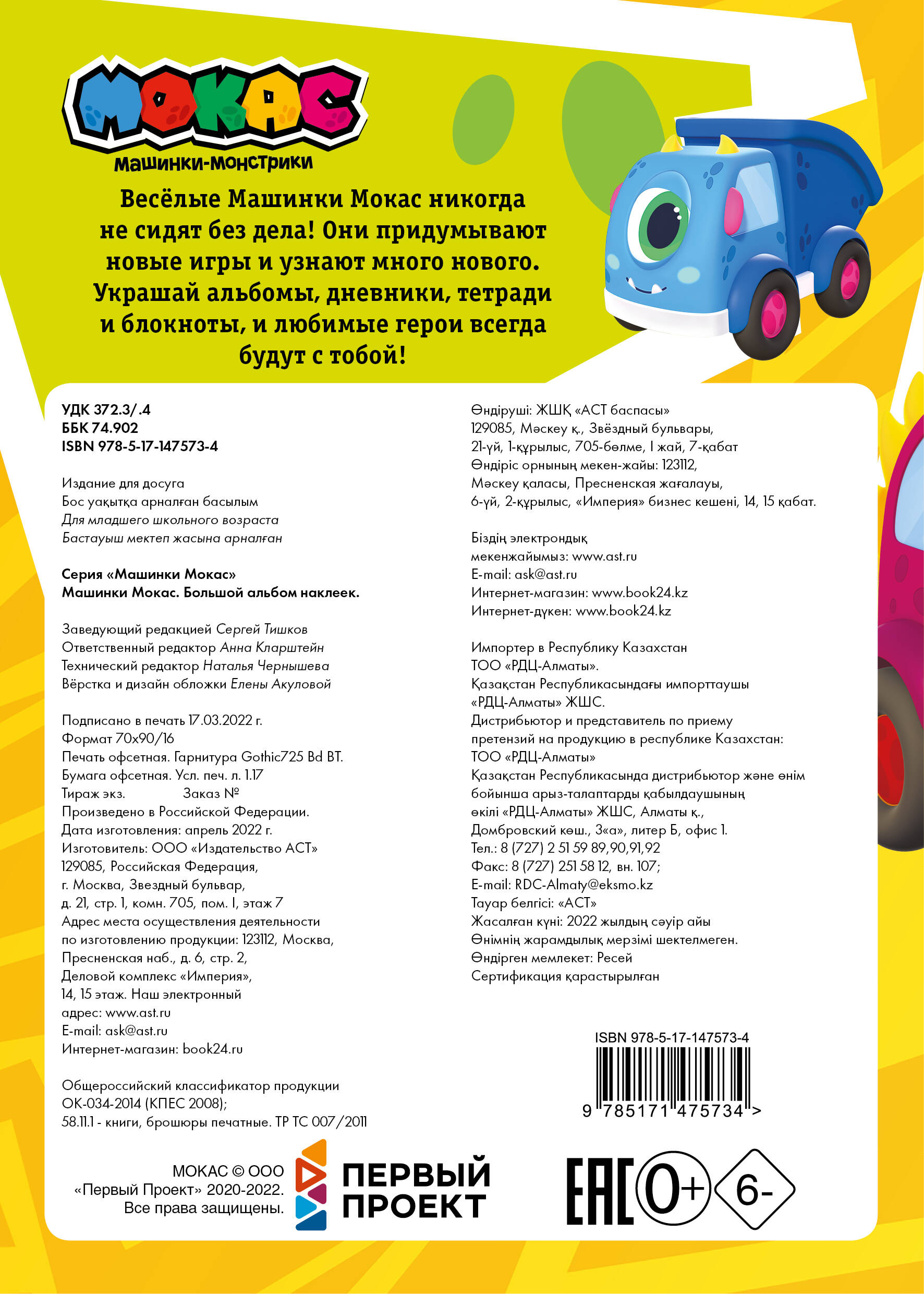 Аннотация: Машинки Мокас. Большой альбом наклеек
