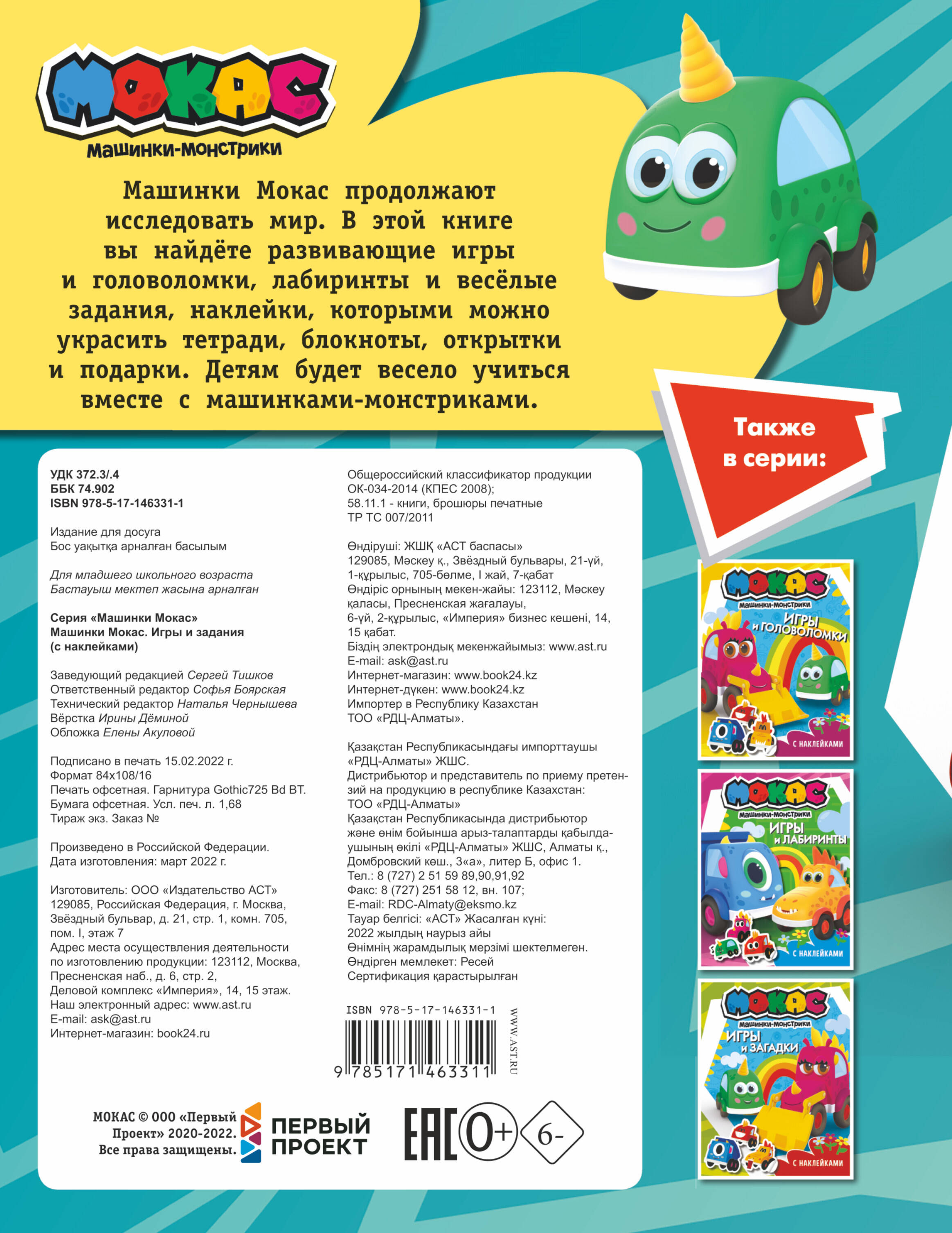 Аннотация: Машинки Мокас. Игры и задания (с наклейками)