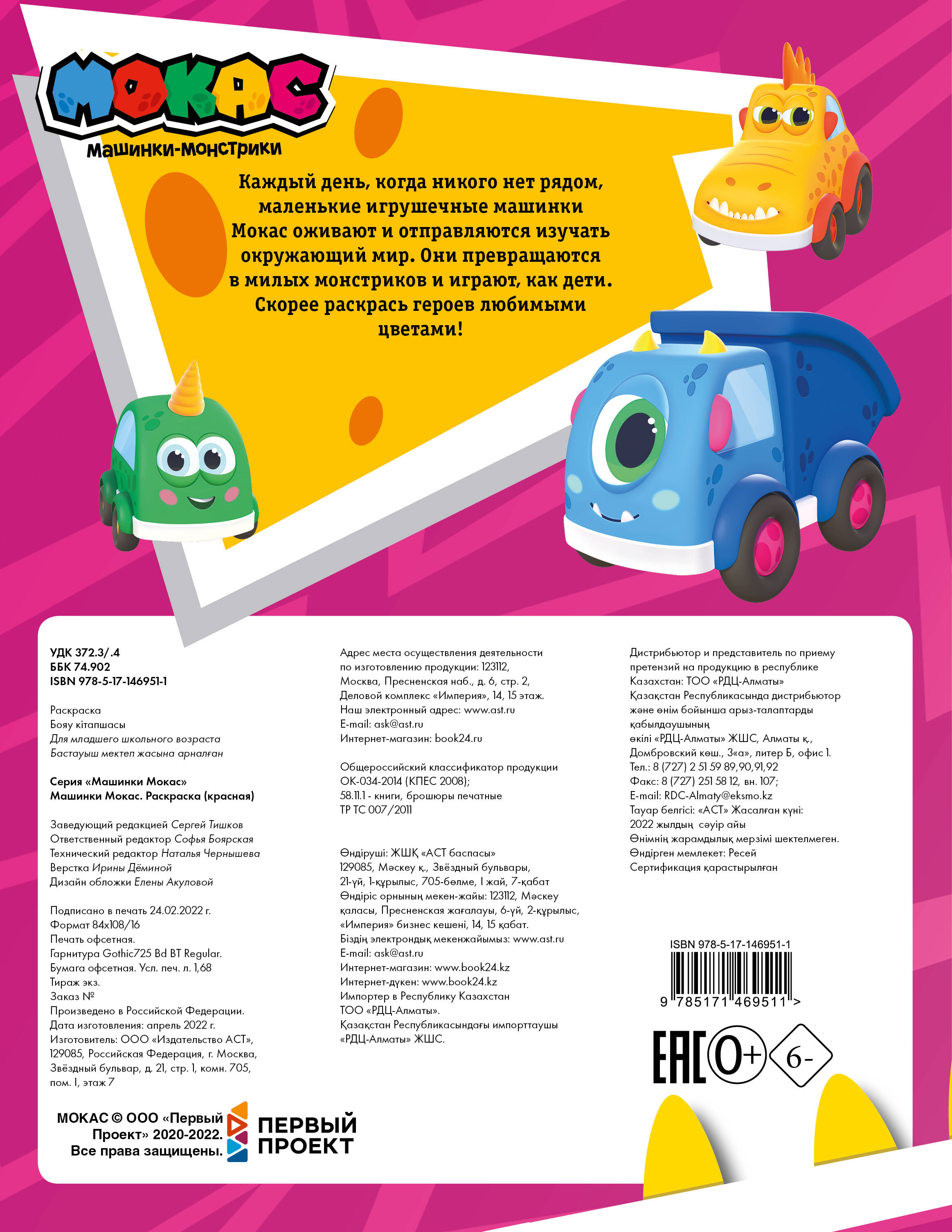 Аннотация: Машинки Мокас. Раскраска (красная)