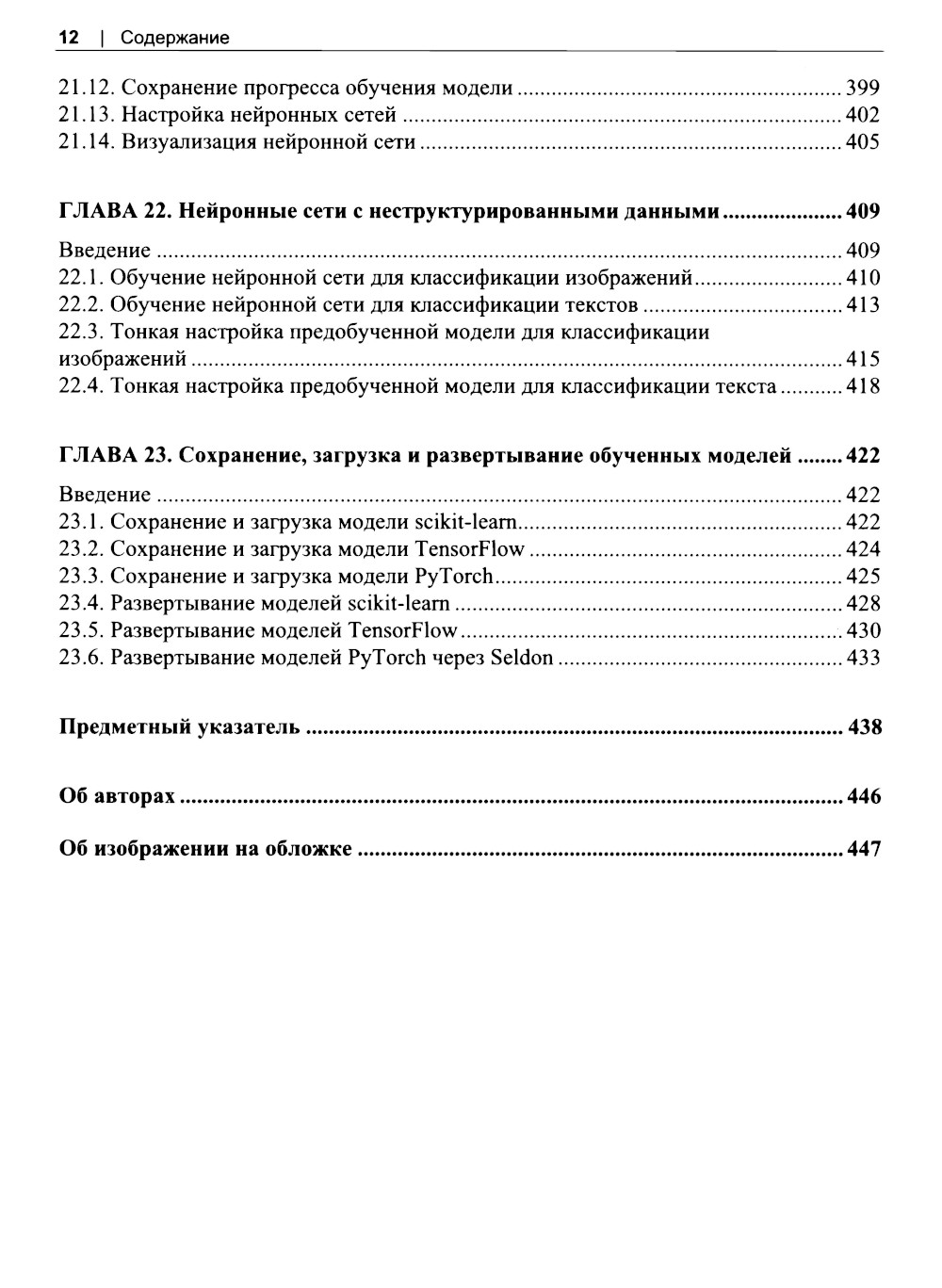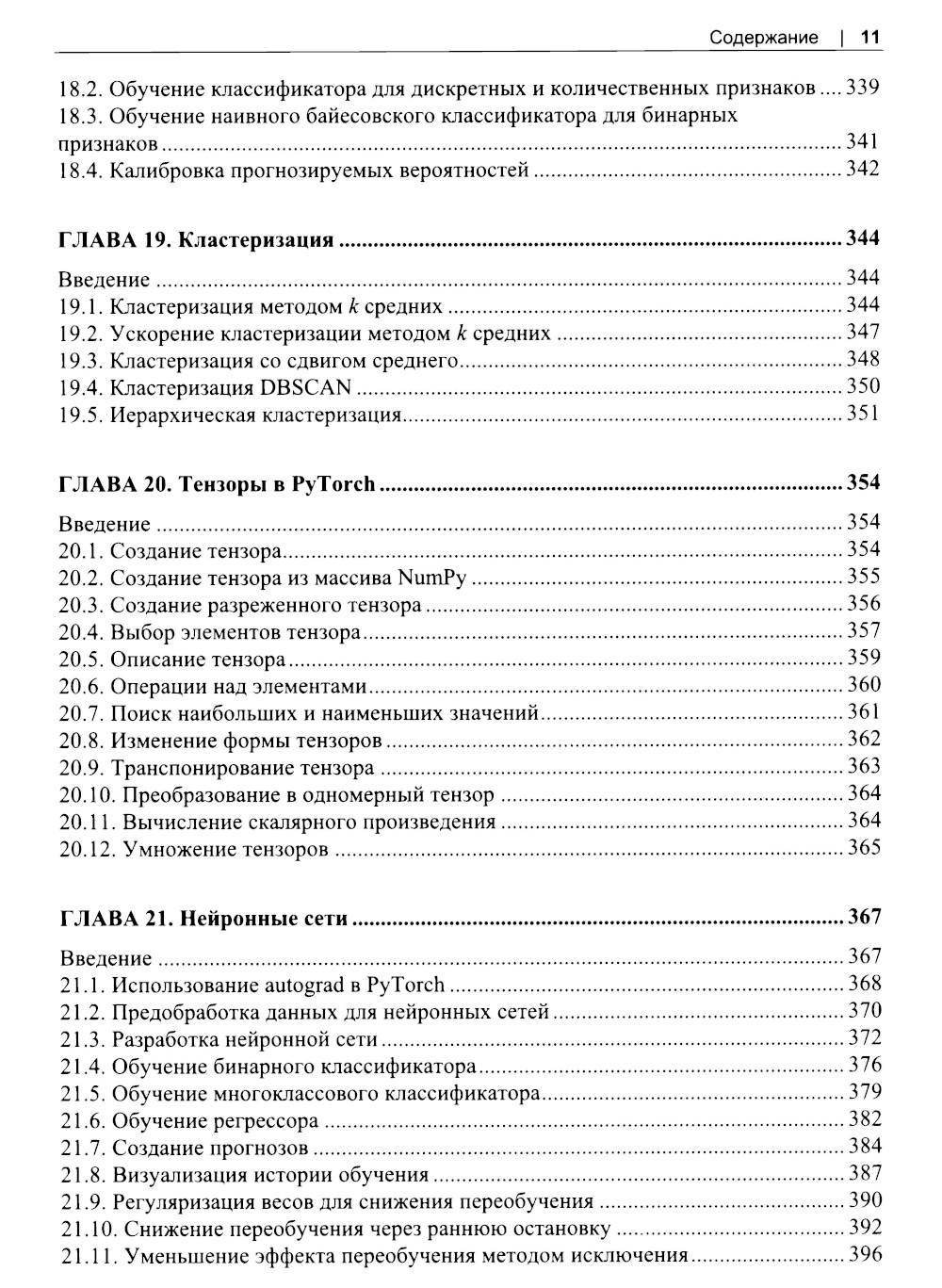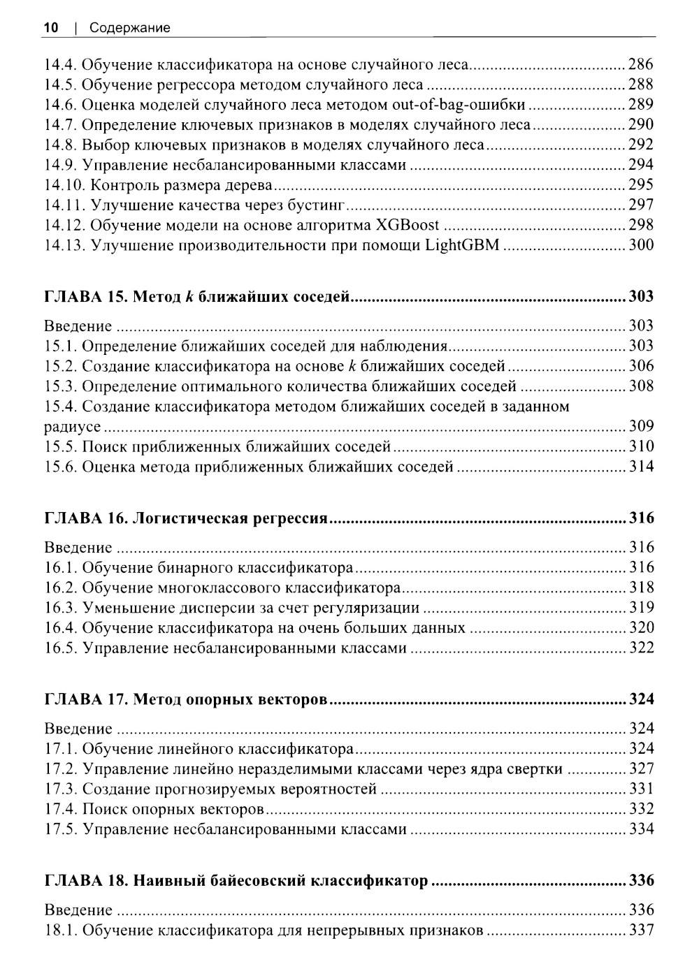 Книга содержит около 200 задач машинного обучения, таких как загрузка и обработка текстовых или числовых данных, отбор модели и многие другие. Рассмотрена работа с языком Python, библиотеками pandas и scikit-learn. Коды примеров можно вставлять, объединять и адаптировать, создавая собственное приложение. Приведены рецепты решений с использованием: векторов, матриц и массивов; данных из CSV, JSON, SQL, баз данных, облачных хранилищ и других источников; обработки данных, текста, изображений, дат и времени; умень-шения размерности и методов выделения или отбора признаков; оценивания и отбора моделей; линейной и логистической регрессии, деревьев, лесов и k ближайших соседей; опорно-векторных машин (SVM), наивных байесовых классификаторов, кластеризации и нейронных сетей; сохранения и загрузки натренированных моделей. Во втором издании все примеры обновлены, рассмотрены задачи и фреймворки глубокого обучения, расширены разделы с тензорами, нейронными сетями и библиотекой глубокого обучения PyTorch.| Издательство | АЛИСТ |