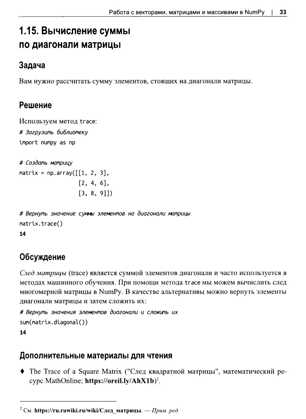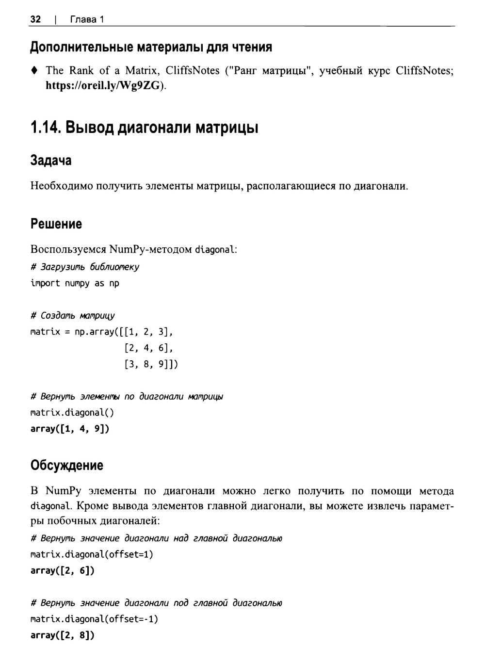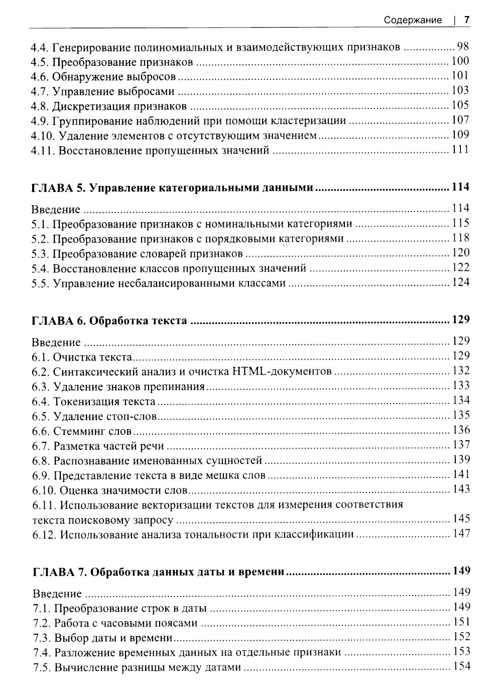 Книга содержит около 200 задач машинного обучения, таких как загрузка и обработка текстовых или числовых данных, отбор модели и многие другие. Рассмотрена работа с языком Python, библиотеками pandas и scikit-learn. Коды примеров можно вставлять, объединять и адаптировать, создавая собственное приложение. Приведены рецепты решений с использованием: векторов, матриц и массивов; данных из CSV, JSON, SQL, баз данных, облачных хранилищ и других источников; обработки данных, текста, изображений, дат и времени; умень-шения размерности и методов выделения или отбора признаков; оценивания и отбора моделей; линейной и логистической регрессии, деревьев, лесов и k ближайших соседей; опорно-векторных машин (SVM), наивных байесовых классификаторов, кластеризации и нейронных сетей; сохранения и загрузки натренированных моделей. Во втором издании все примеры обновлены, рассмотрены задачи и фреймворки глубокого обучения, расширены разделы с тензорами, нейронными сетями и библиотекой глубокого обучения PyTorch.| Издательство | АЛИСТ |