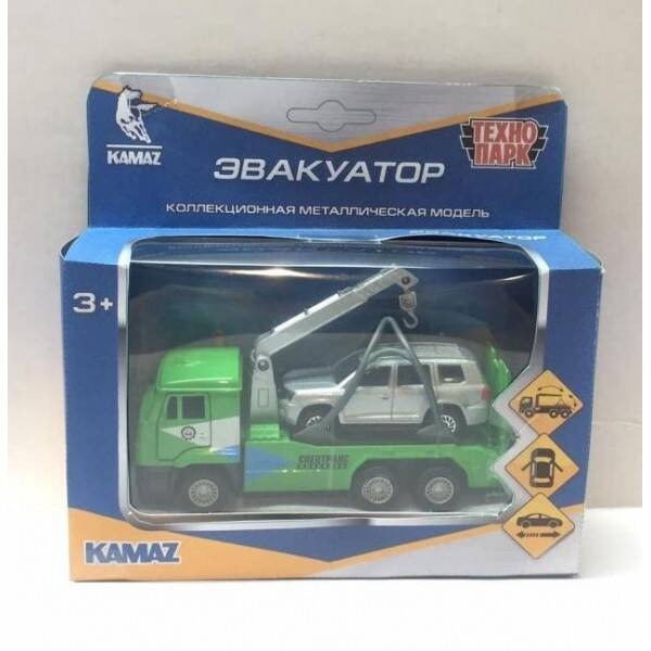 Аннотация: Машины металл Камаз эвакуатор 12см, инерц. +Toyota Land Cruiser 7,5см в кор. Технопарк в кор.2*24шт