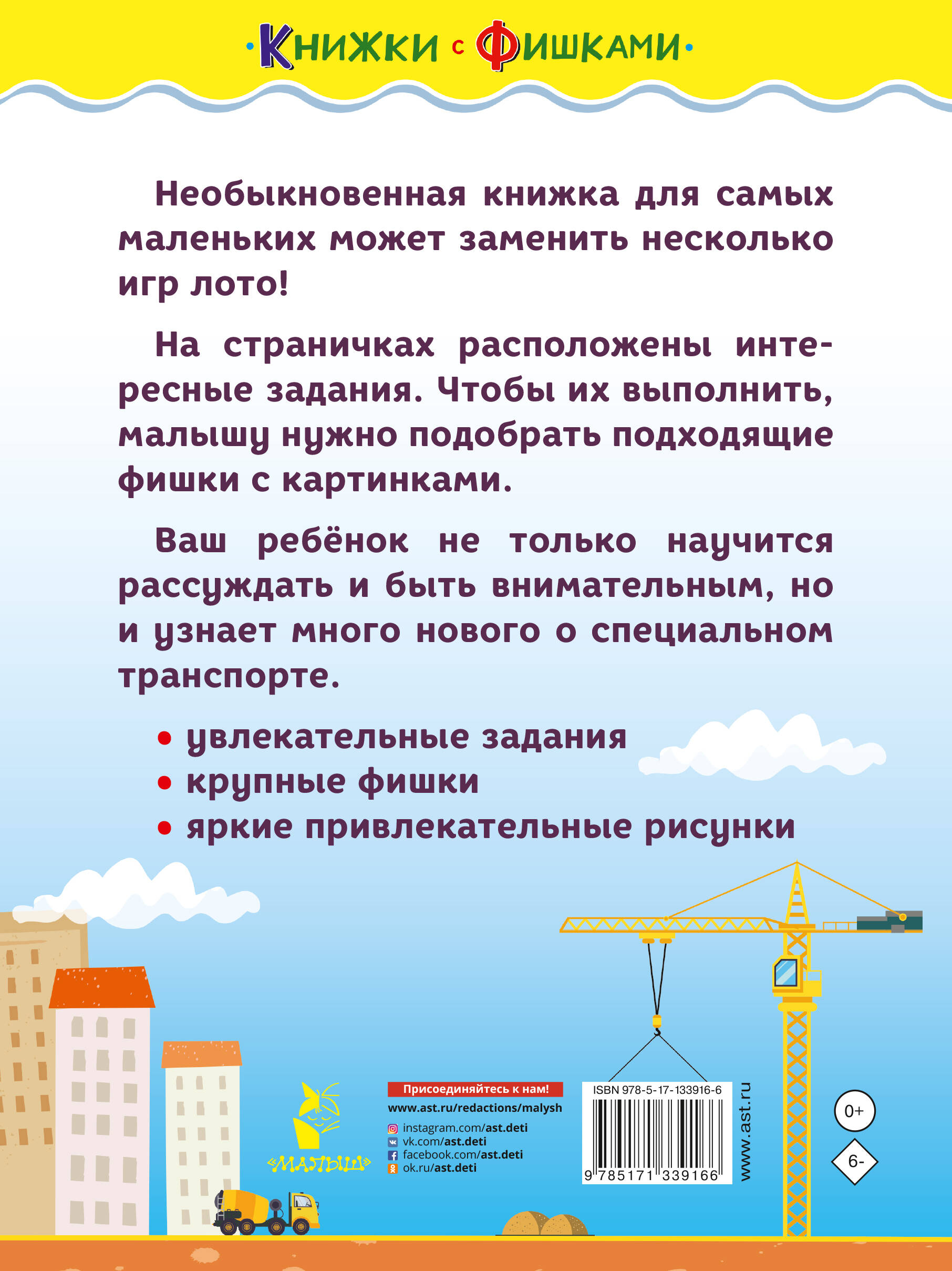 Необыкновенная книжка для самых маленьких может заменить несколько игр лото! На страничках расположены интересные задания. Чтобы их выполнить, малышу нужно подобрать подходящие фишки с картинками. Ваш ребёнок не только научится рассуждать и быть внимательным, но и узнает много нового о транспорте. • увлекательные задания • крупные фишки • яркие привлекательные рисунки| Издательство | АСТ |
