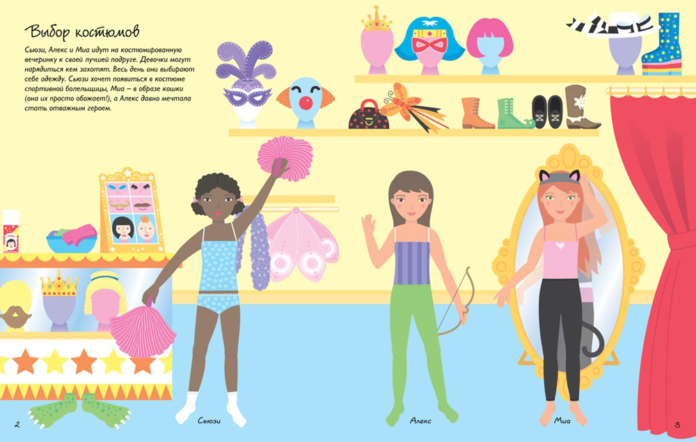 Все девочки любят маскарады и весёлые вечеринки. А ещё они обожают красивые платья и карнавальные костюмы. Наряди девочек с помощью ярких наклеек! Читаем и играем! Развиваем внимание, воображение, мелкую моторику и художественный вкус. Играя с книгами из серии «Супернаклейки», ребенок развивает мелкую моторику, аккуратность и чувство прекрасного. Добрые и яркие картинки интересно разглядывать, а небольшие познавательные истории помогают расширять кругозор маленьких читателей. Книги яркие и качественные: у них плотные страницы, глянцевая бумага и приятная обложка. Ребенок сможет играть с книжкой в течение пяти часов, а благодаря удобному формату взять любимую историю с собой в поездку. «Супернаклейки» точно понравятся и детям, и их родителям!