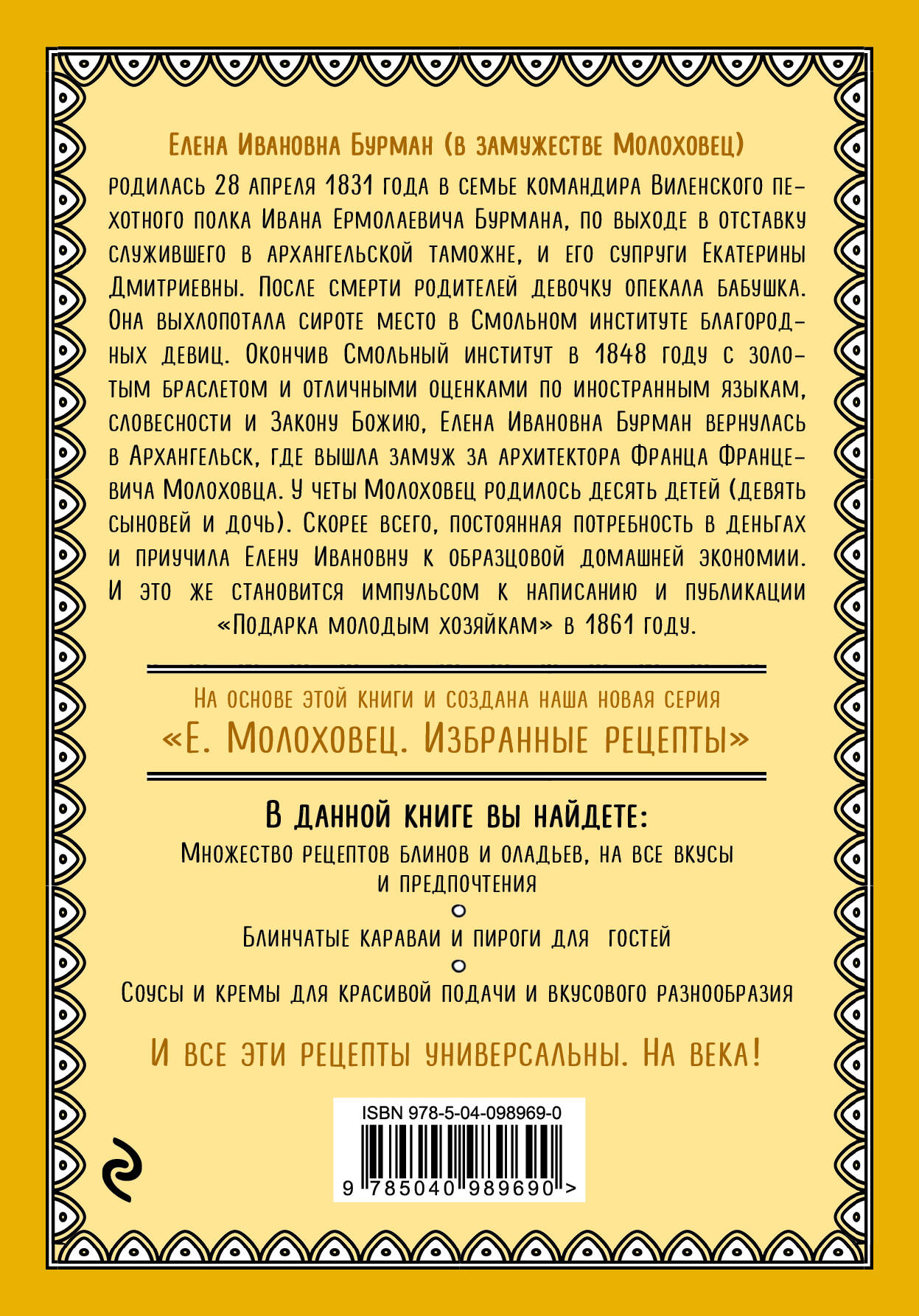 Новая книга из серии «Елена Молоховец. Избранные рецепты». К весеннему празднику Масленицы. На прекрасной бумаге, с иллюстрациями, на 48 страницах расположилось множество рецептов блинов и сопутствующих им начинок и заправок.| Издательство | ООО "Издательство "Эксмо" |