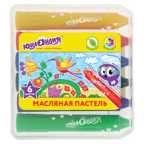 Масляная пастель "Юнландия", 6 цветов, яркие цвета, пластиковый корпус