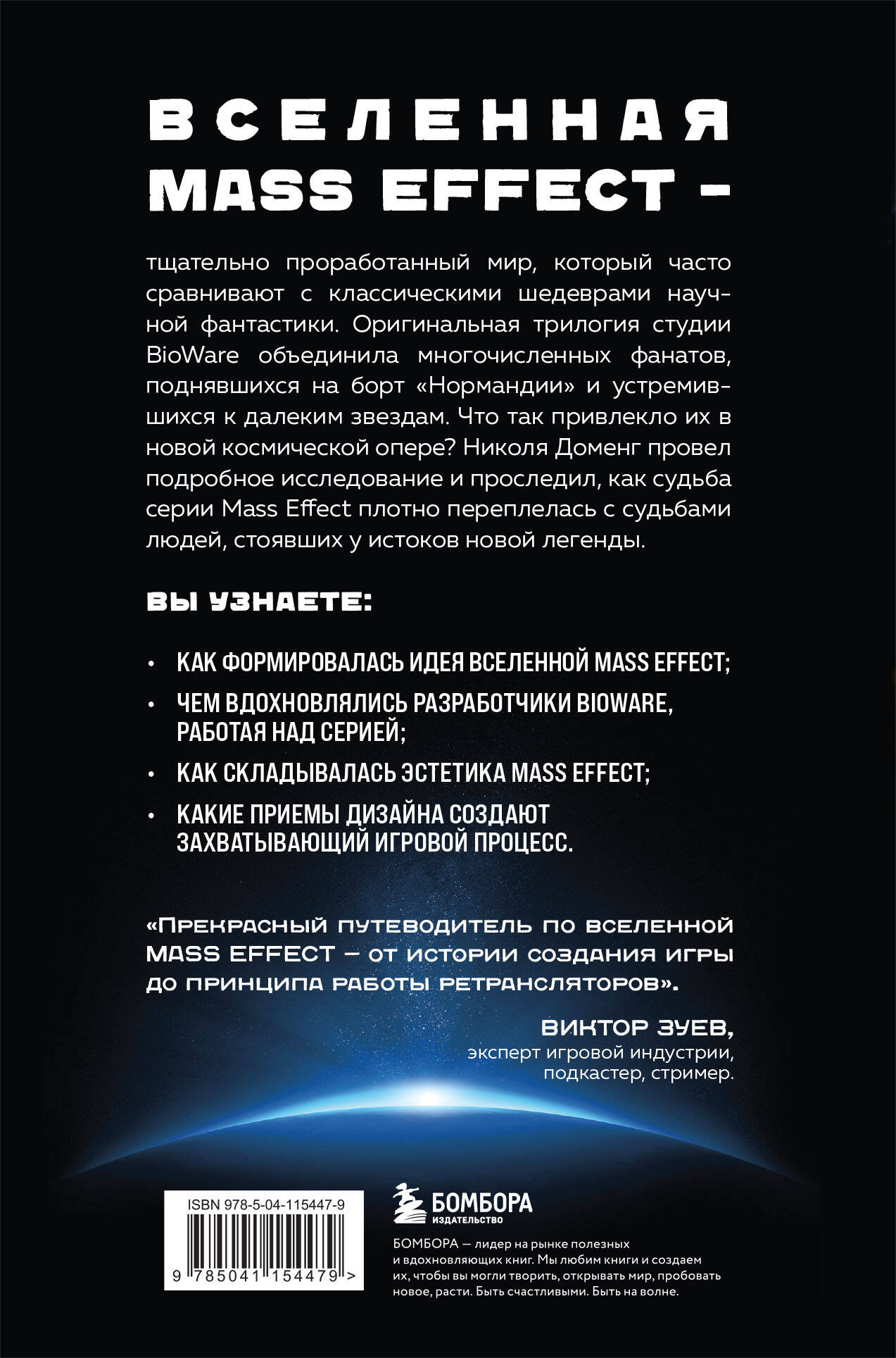 Вселенная Mass Effect - тщательно проработанный мир, который часто ставят в один ряд с научно-фантастическими шедеврами популярной культуры, вроде серила Star Trek. Оригинальная трилогия серии, созданная в стенах студии BioWare, объединила вокруг себя многочисленных фанатов, поднявшихся на борт «Нормандии» и устремившихся к далеким звездам. Что так привлекло их в новой космической опере? Николя Доменг провел подробное исследование этого вопроса. Судьба серии Mass Effect неразрывно связана с судьбой BioWare и теми людьми, кто стоял у истока новой космической легенды. Вы узнаете, как формировалась вселенная Mass Effect, что послужило источниками вдохновения для ее создателей, как складывалась эстетика серии, а также за счет каких механик и приемов игровой процесс ощущается целостным и невероятно захватывающим.| Издательство | ООО "Издательство "Эксмо" |