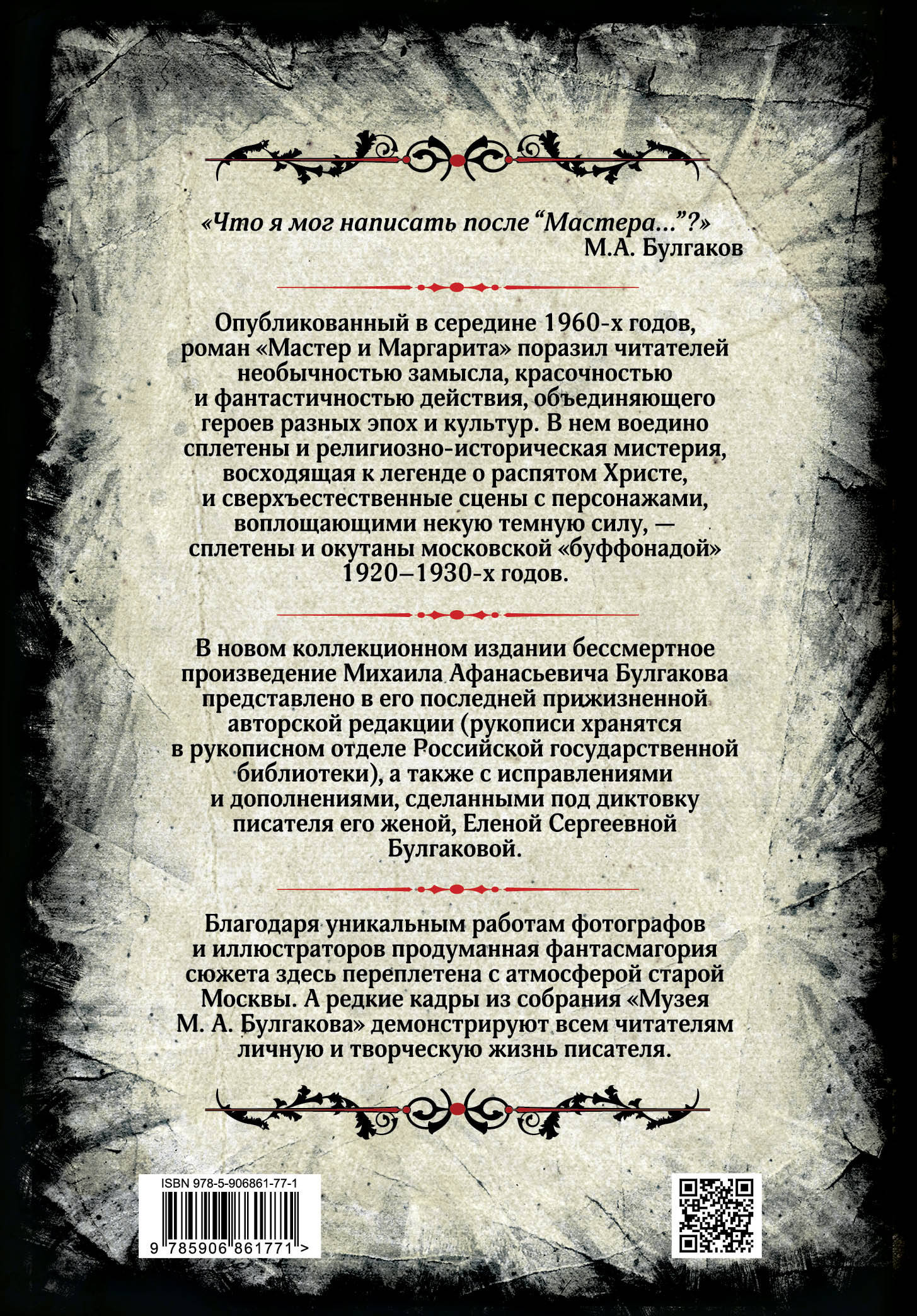 Роман «Мастер и Маргарита» претерпел многочисленные запреты к изданию и гонения, не хуже чем судьба романа о Понтии Пилате. Впервые был издан в 1966 году с купюрами в журнальном варианте, а полный текст романа был опубликован только в 80-е годы ХХ века. До официальной публикации распространялся в перепечатанных вручную копиях и сразу приобрел невероятную популярность и любовь читателя. Феерическая сатира на быт и нравы Москвы 30-х годов, одновременно пронзительная история любви и вечная библейская тема борьбы добра со злом, роман внутри романа - таковы далеко не все пласты этого гениального произведения Михаила Булгакова. В новом юбилейном издании бессмертный роман представлен в его последней прижизненной авторской редакции (рукописи хранятся в рукописном отделе Государственной библиотеки СССР имени В. И. Ленина), а также с исправлениями и дополнениями, сделанными под диктовку писателя его женой, Еленой Сергеевной Булгаковой. А уникальные работы фотографов и иллюстраторов отражают атмосферу Москвы «Булгаковской», демонстрируют всем читателям материалы Музея М. А. Булгакова и редкие кадры из личной и творческой жизни автора.| Издательство | Агентство Алгоритм ООО |